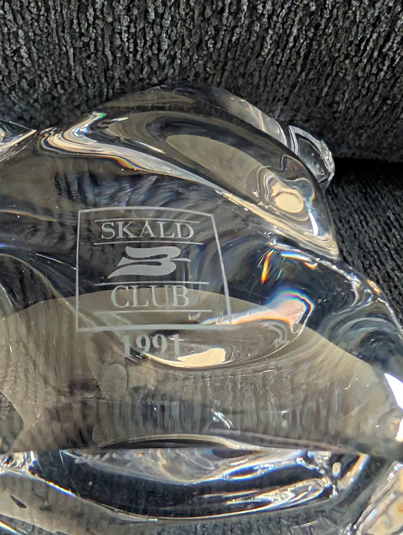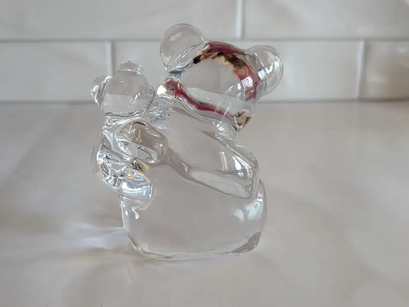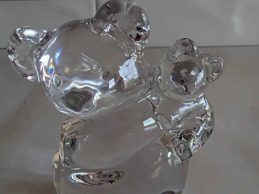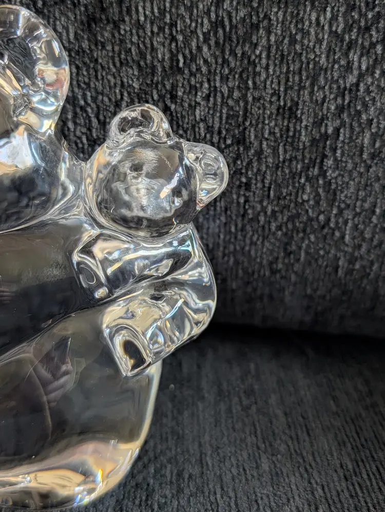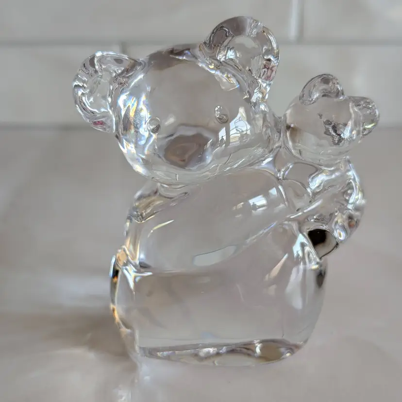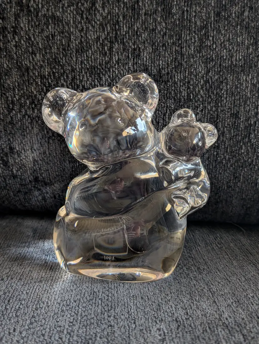 Cute Koala Bear mom and cub glass paperweight from Orrefors Sweden, signed, Skald Club 1991. excellent condition. no defects
