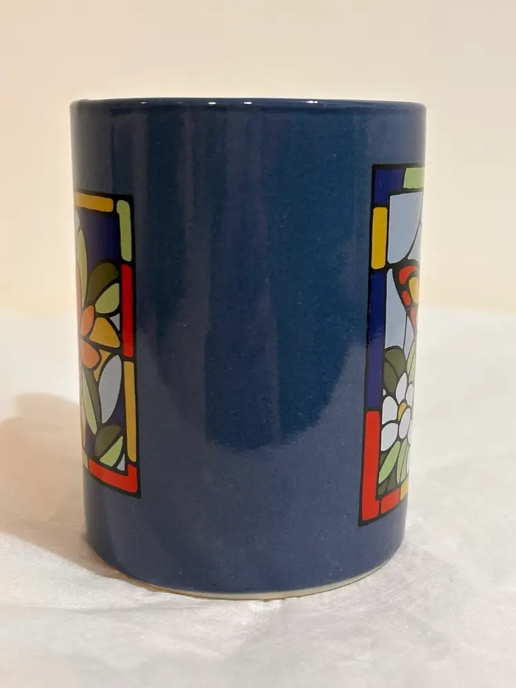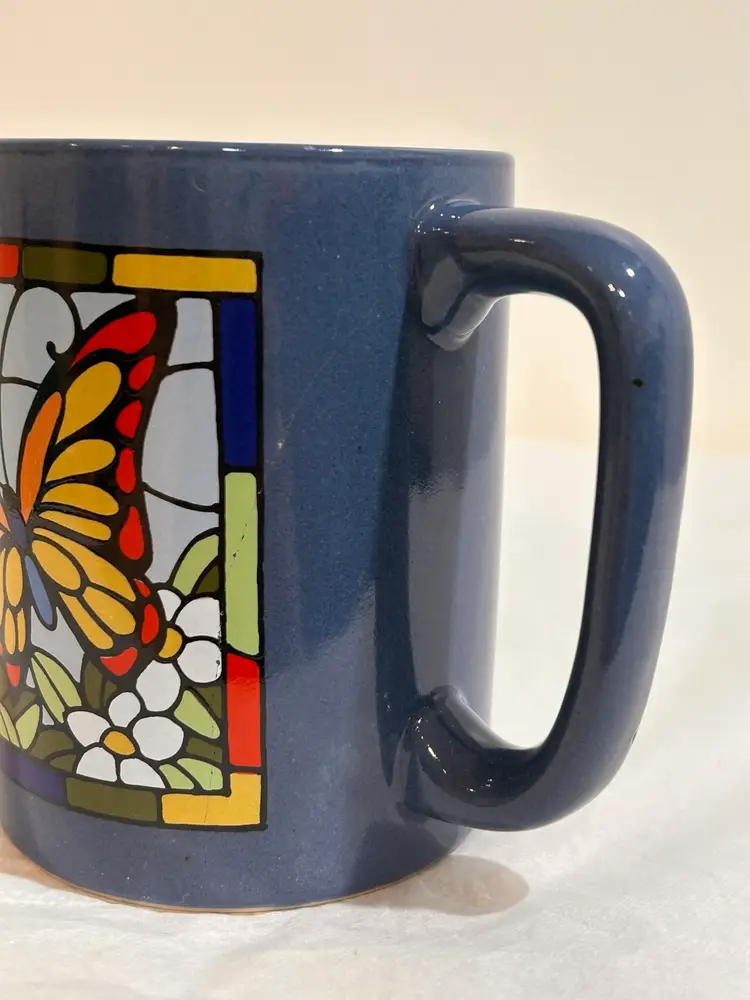 Vtg Otagiri Japan Coffee Mug Stained Glass Art design. Multi colored Butterfly and flowers on one side. Mosaic stained glass design on the opposite side. Holds 6oz 3.75” tall 2 7/8” diameter In pre-owned condition, no utensil marks, no chips or repairs. Stamped Otigari Japan. ** If you’re loving Vintage Mugs, Plates, Serve Ware etc, travel over to my listings to explore once upon a time items for yourself or as a gift.