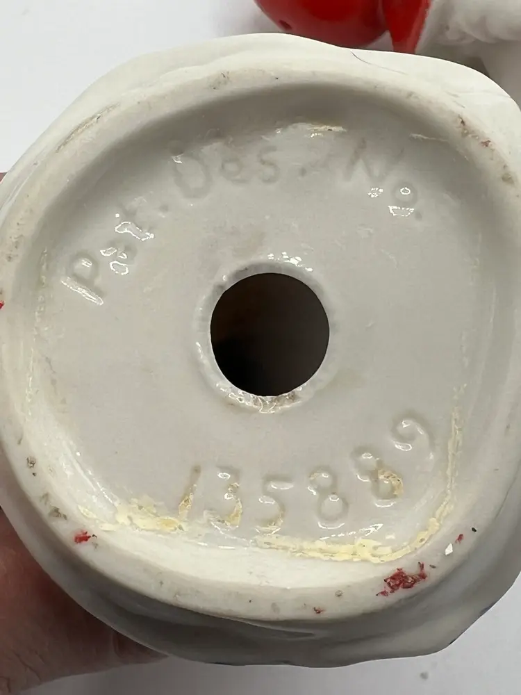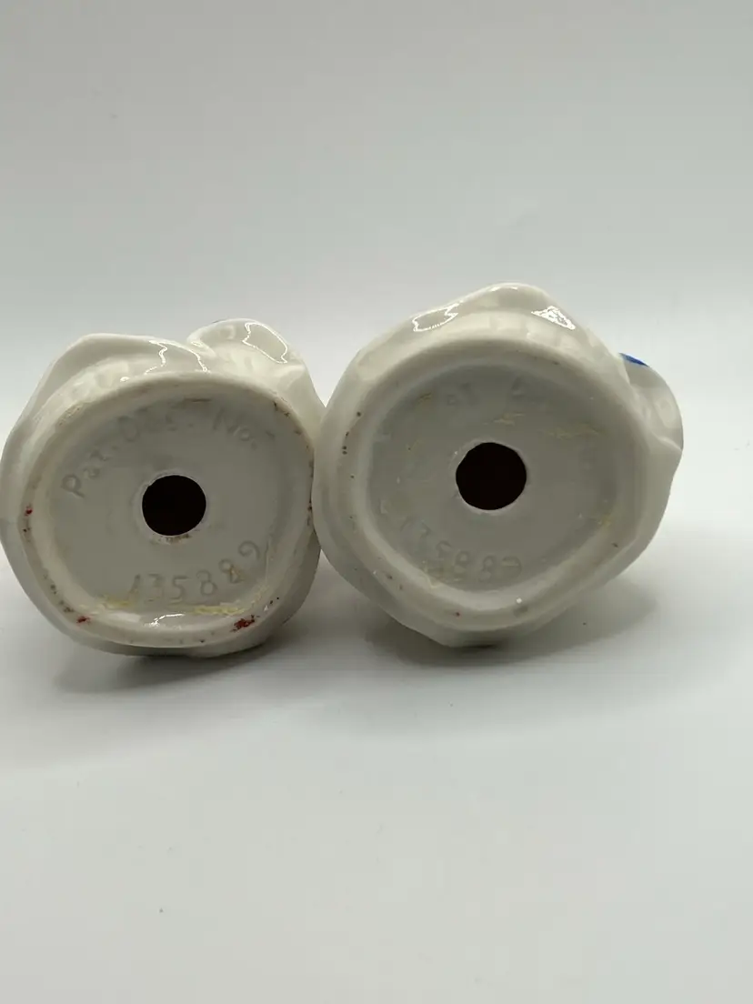 Salt and pepper shakers from the 40s . They do not have their stoppers, although one of them has it pushed inside. They are both embossed with βPAT. DES. NO. 135889β. There is a small amount of tape residue on the bottom of one of them. Otherwise, they are in great vintage shape. If you have any questions , please ask Thank you for looking! GIFT WITH EVERY PURCHASE!π