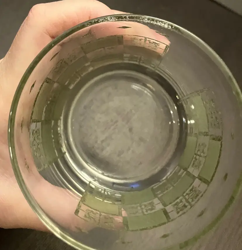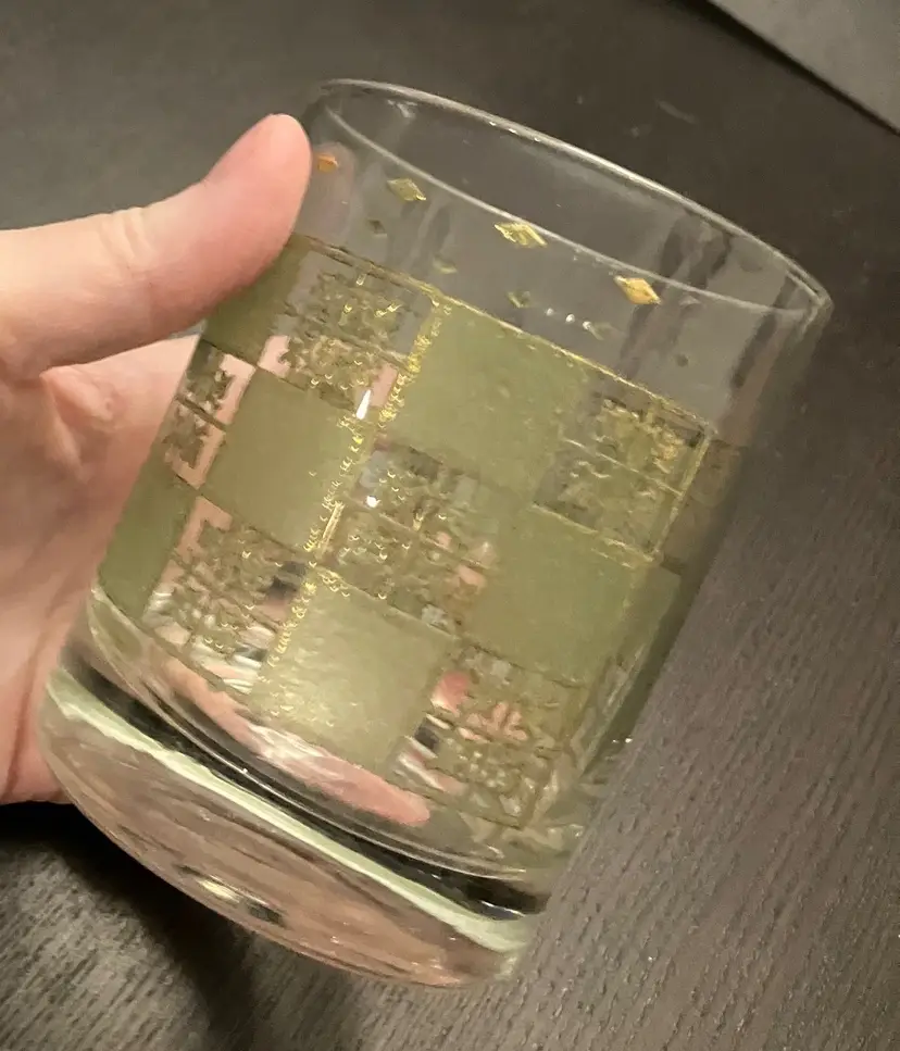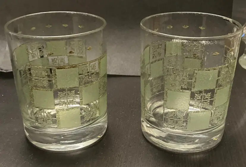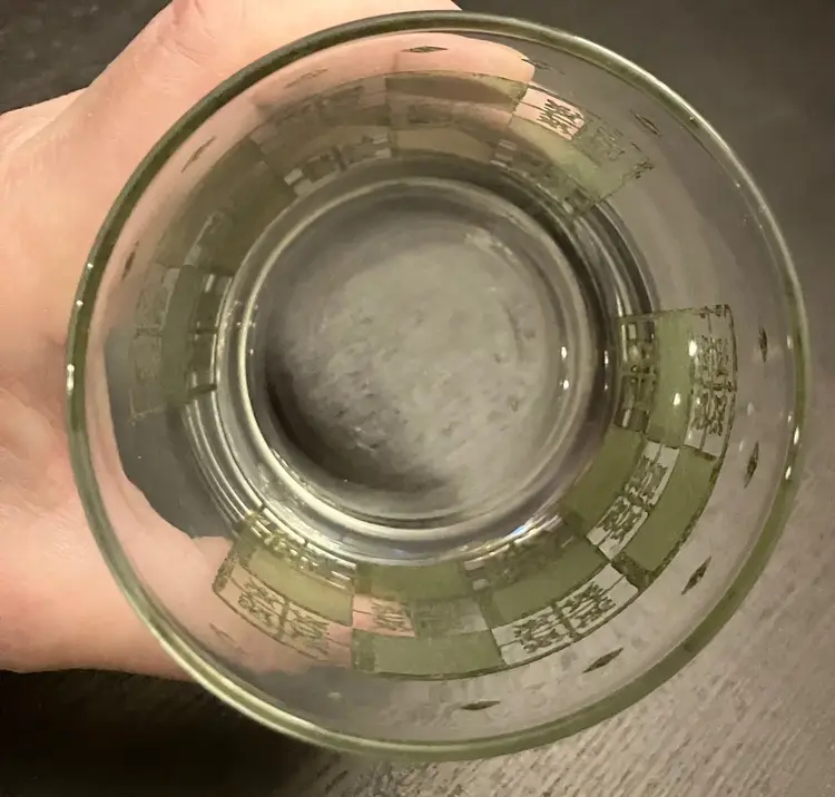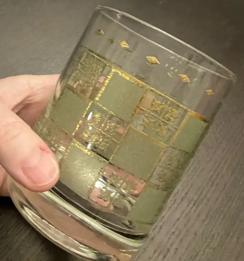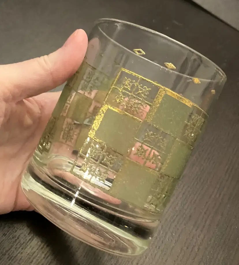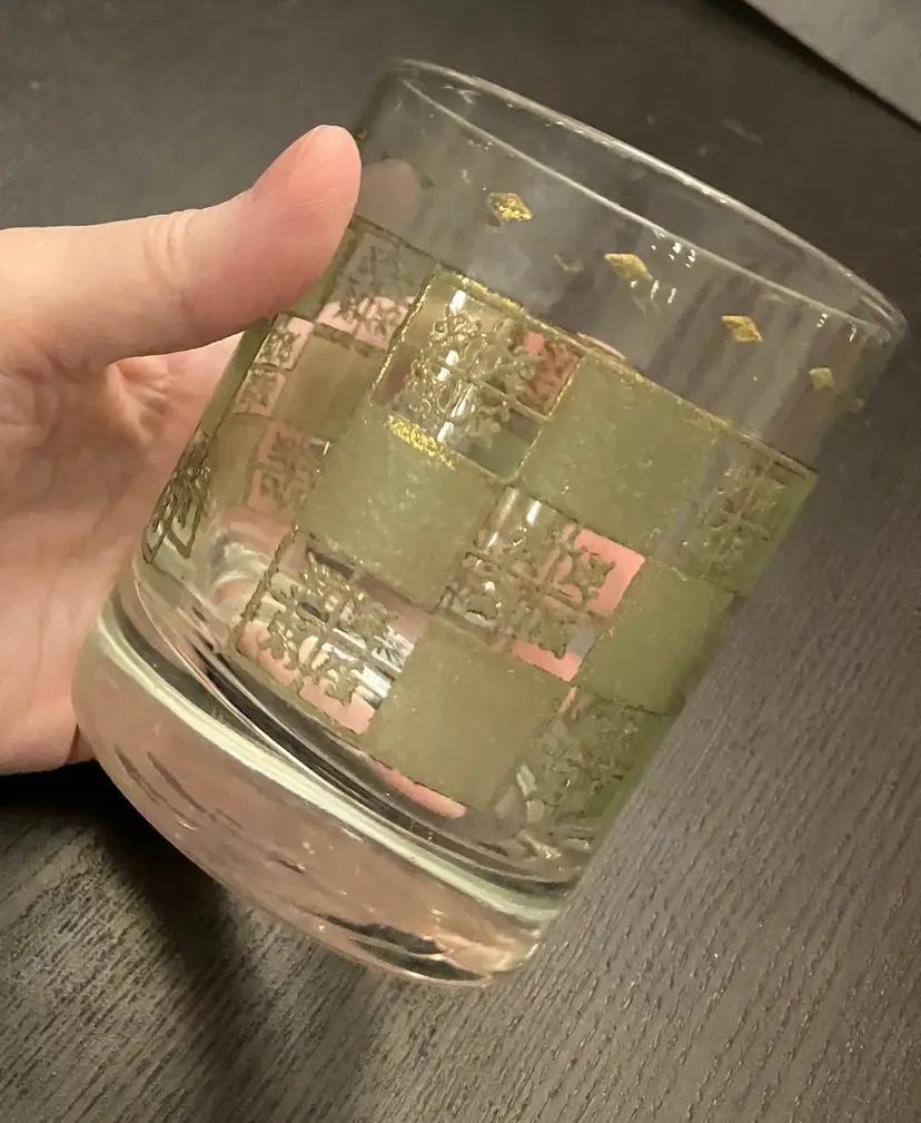 Wear on both the green and the gold. No cracks. Measures about 3" in diameter and 4" tall.