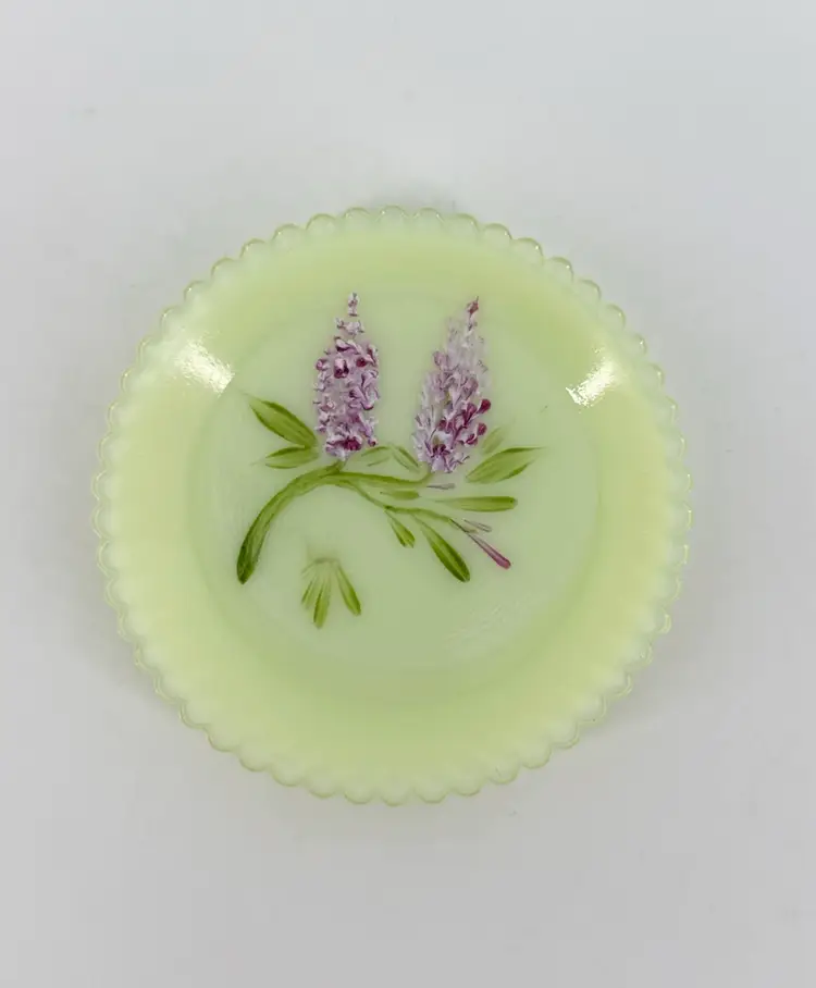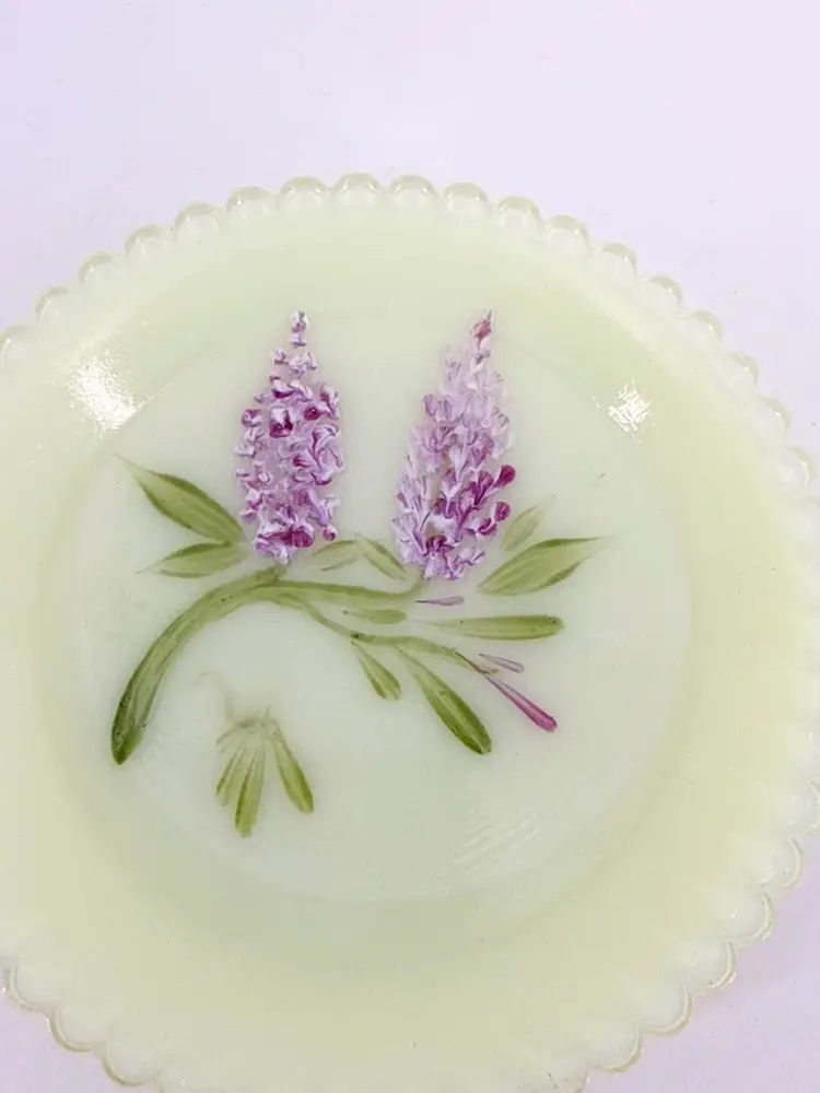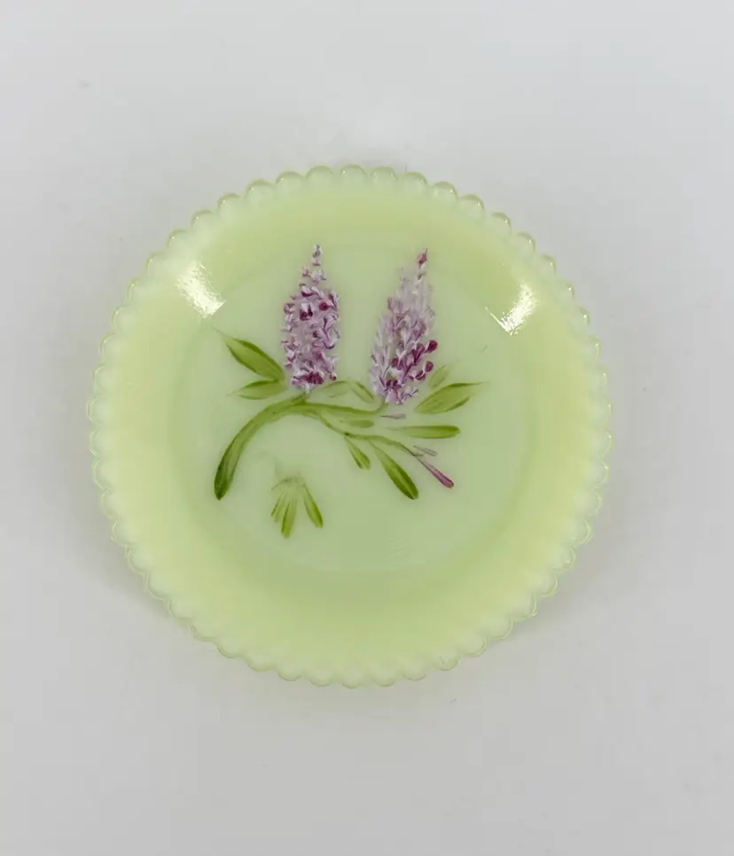 It measures 3.5" in diameter and is in excellent condition. There are no cracks, breaks, chips or repairs. (See photos).