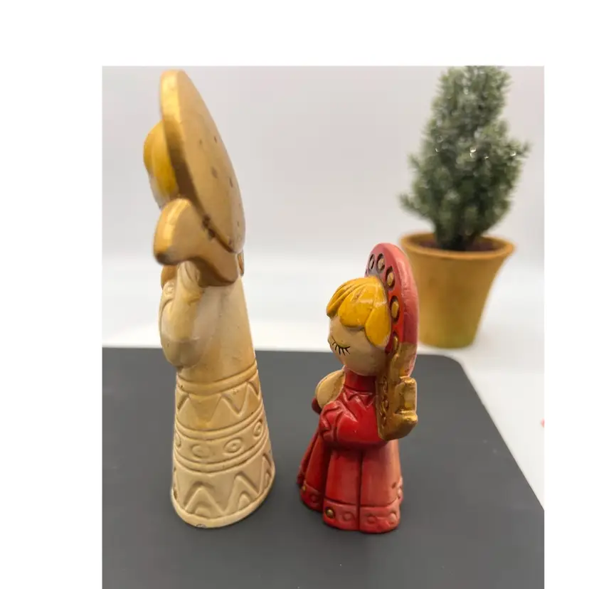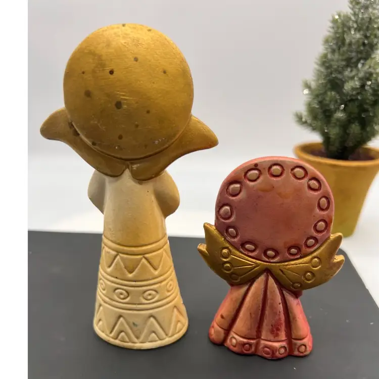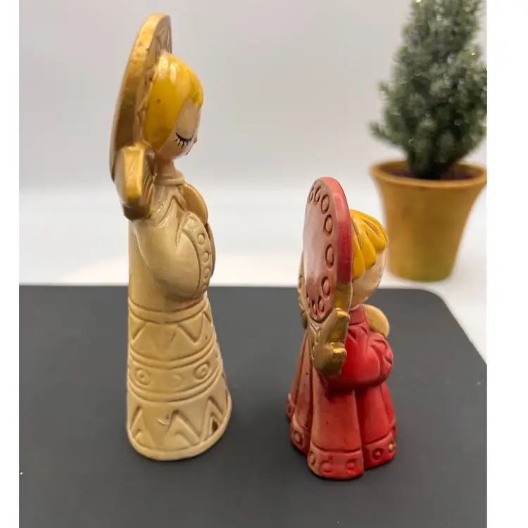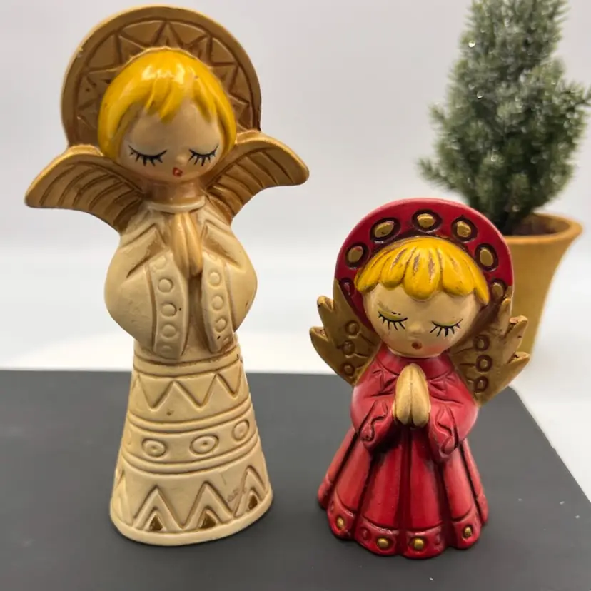 VTG STAR JAPAN CHRISTMAS ANGELS WITH PRAYING HANDS. CHARMING ADDITION TO ANY HOLIDAY COLLECTION. HAND PAINTED,GLOSSY WOOD MADE IN JAPAN THEY ARE A SPECIAL FIND FOR COLLECTORS OR A LOVELY GIFT. THEY ARE IN WONDERFUL CONDITION CONSIDERING THERE AGE AND USE. PLEASE SEE PICTURES RED ANGELS BACK SKIRT IS A LITTLE FADED.