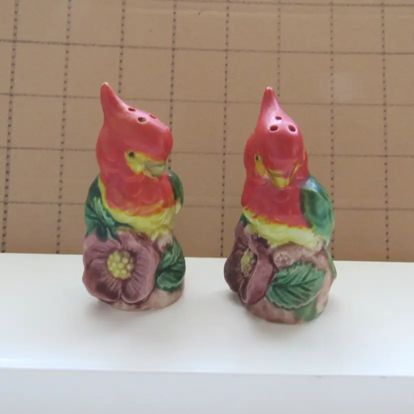 Vtg Parrots Salt and Pepper Shaker Set
