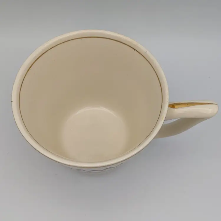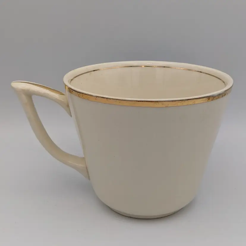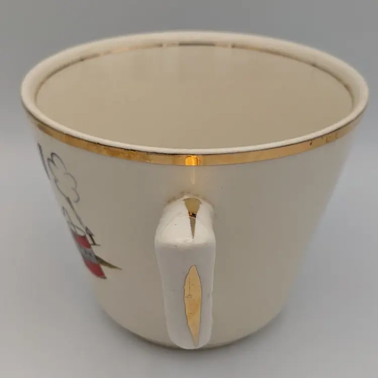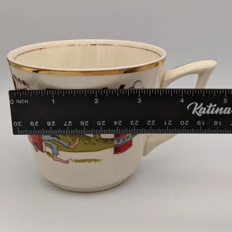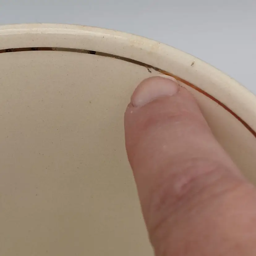 Chip on inside rim, flea bites on the rim, slightly worn gold trim Item Height: 3.5 in Item Width: 5.75 in Item Diameter: 4.25 in Item Weight: 12.3 oz