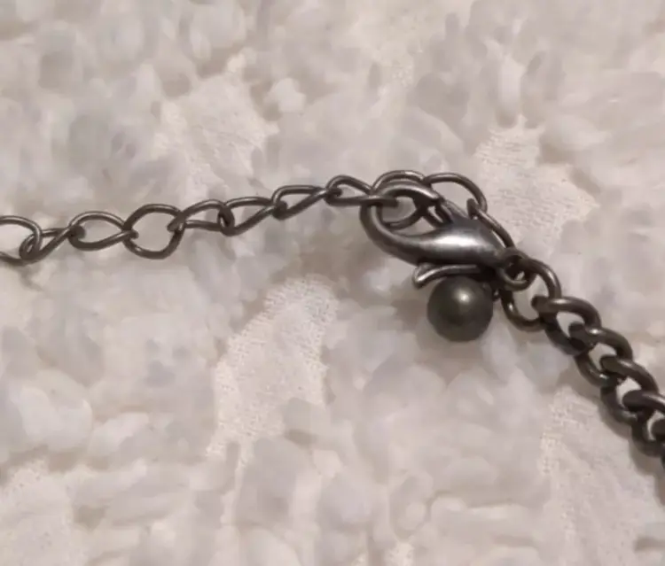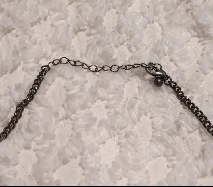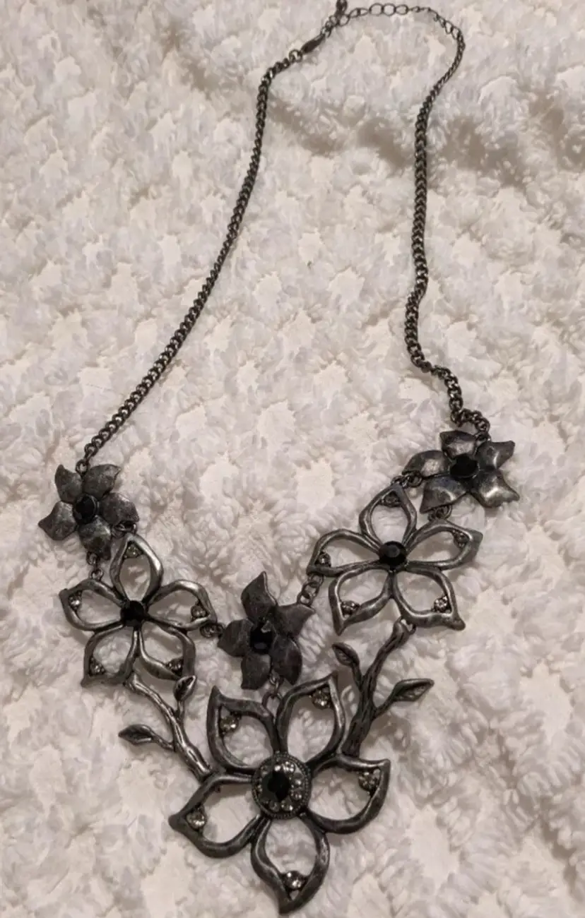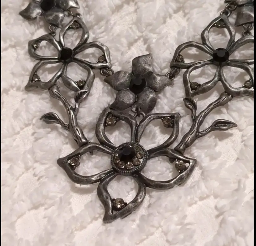 VTG Pewter Metal Black Crystal Floral Costume Jewelry Necklace
