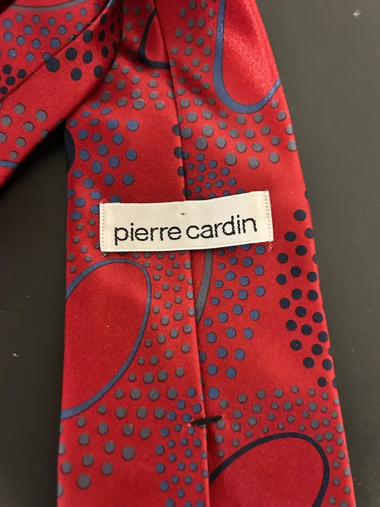 Vintage Pierre Cardin Tie red black gray circles dots. 70s vibe. Let me know if you have any questions. Offers seriously considered. Thank you for stopping by.