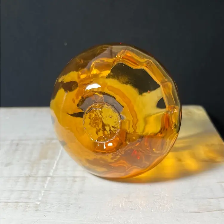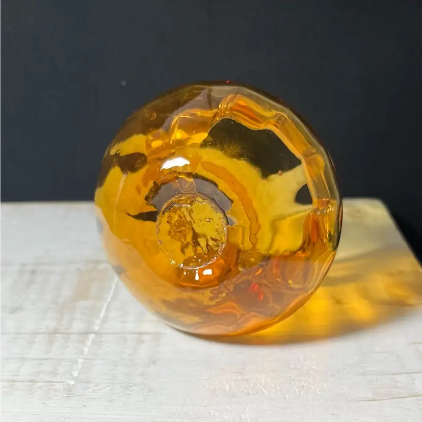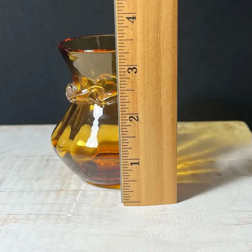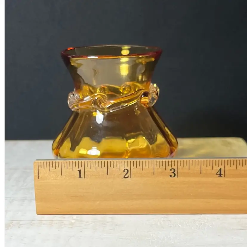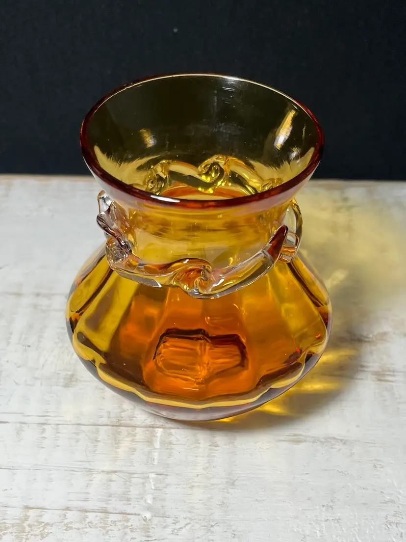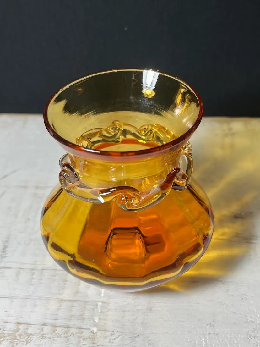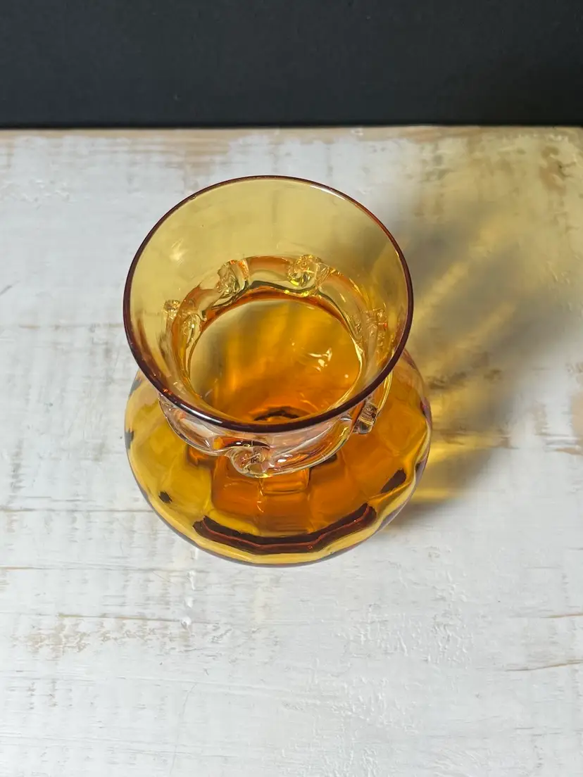 #1109 VTG Pilgrim Glass Mini Amber Vase With Swirl Collar. Measures 3.5” x3”. No chips or cracks.