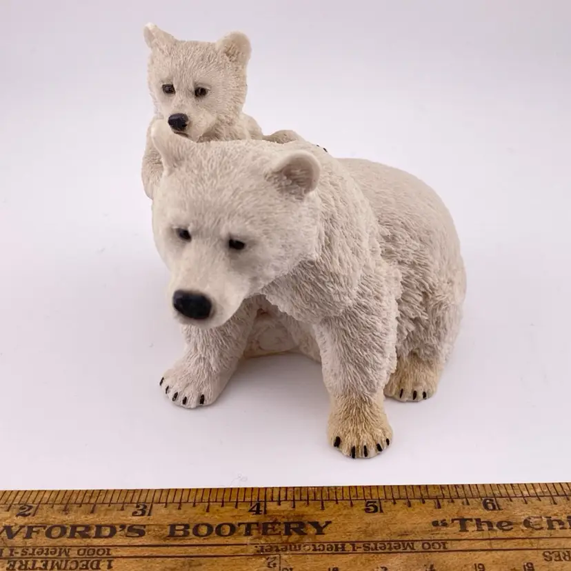 Vtg Polar Bear & Cub Figurine Alabaster and Resin Made in Italy Castanga 1988