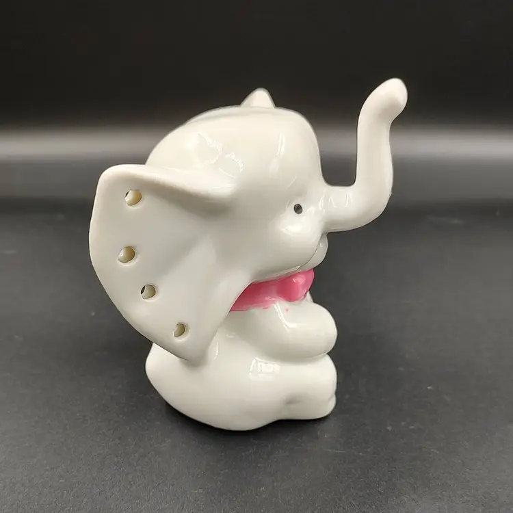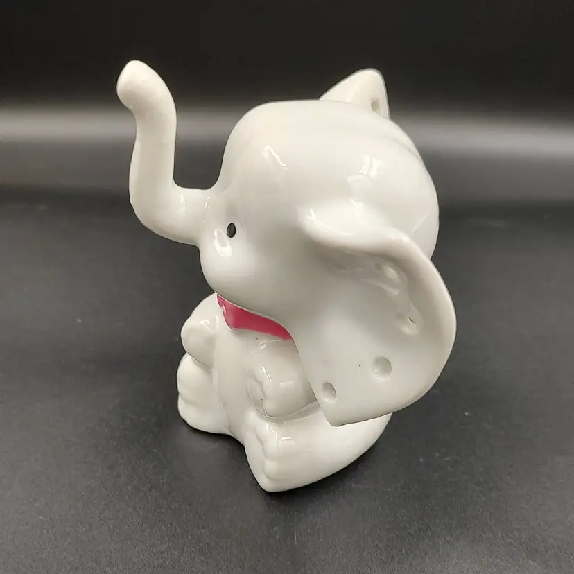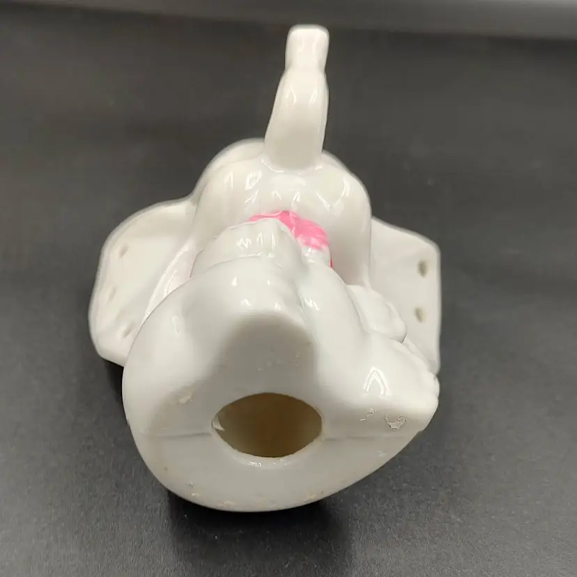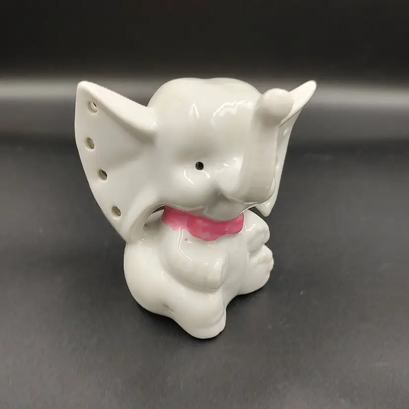 Vintage 1980's Porcelain Baby Elephant Earring Holder. Height 3" x width 2" x length 3.5".
