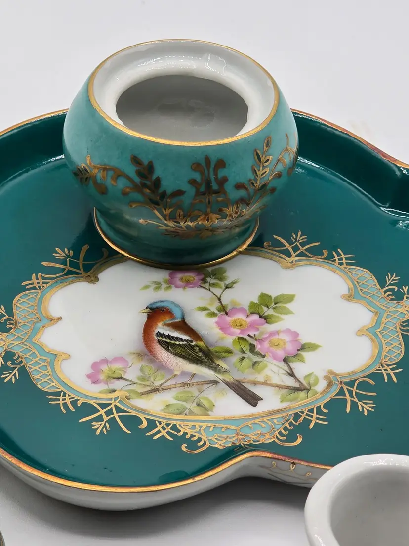 Beautiful porcelain Inkwell with hand Painted Bird perched on cherry blossom. Has it original, removable insert for ink. Thank you for your time and interest.