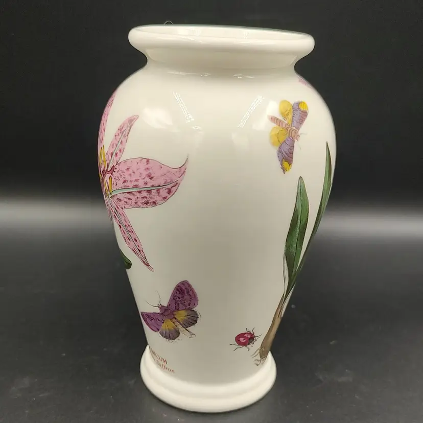 Vintage 1973 Portmeirion Botanic Garden Meadow Saffron Porcelain Canton Vase. Height 5.5" x diameter 3.5". Made in England