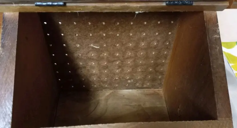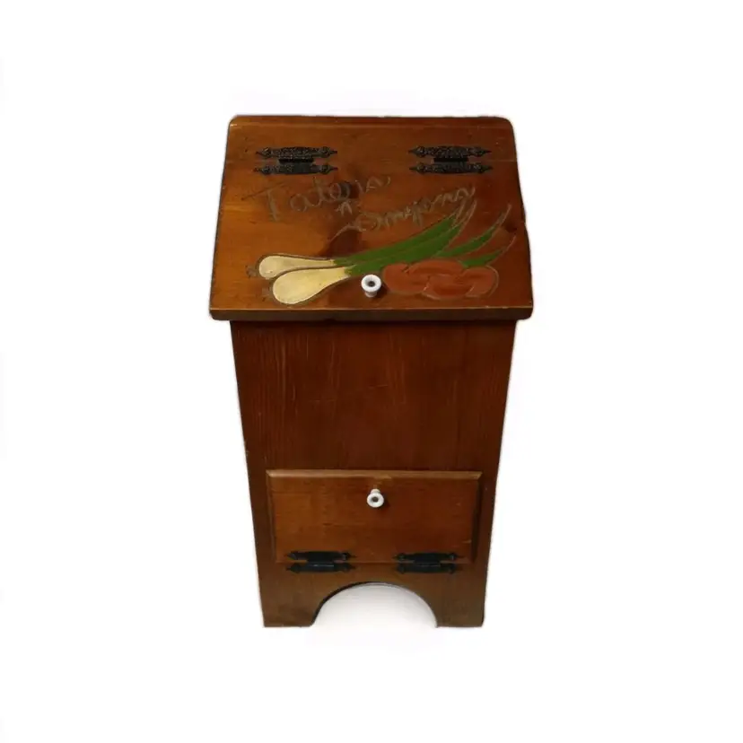 The piece is designed with a lidded feature to keep your potatoes and onions fresh and protected. Its primitive design adds a touch of nostalgia to your kitchen or pantry,