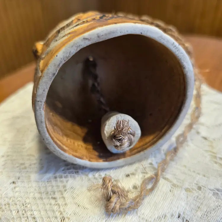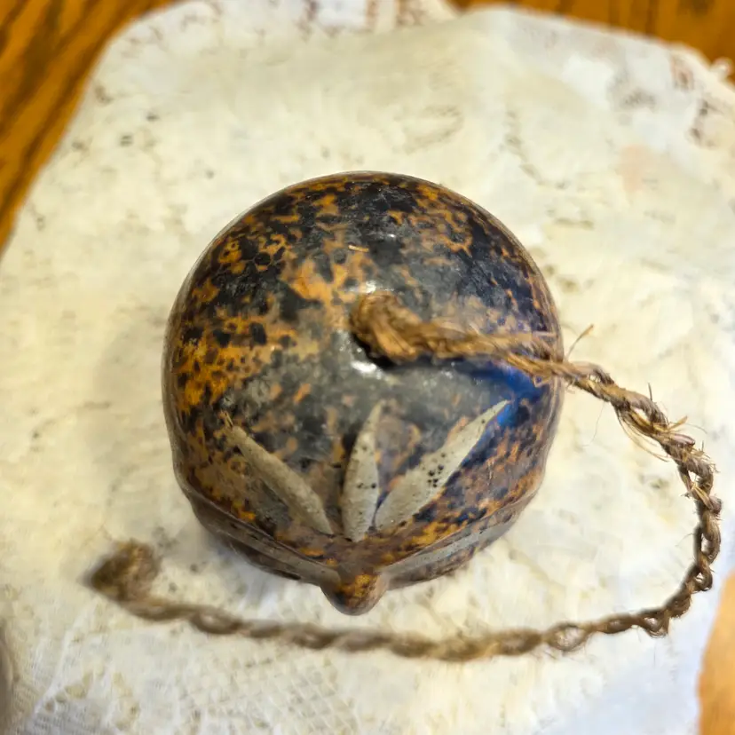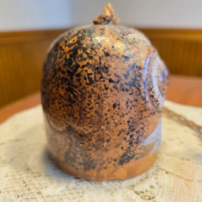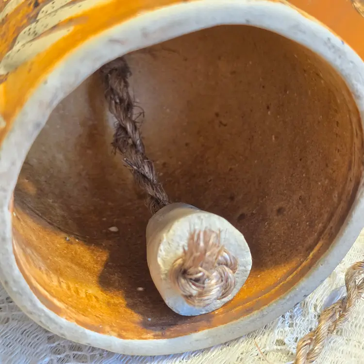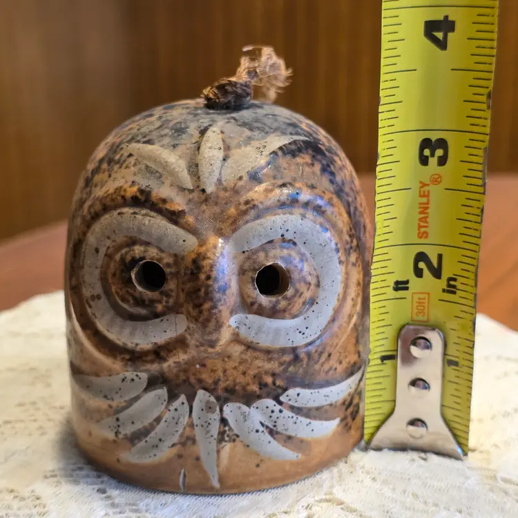 Art pottery owl bell, wind chime, or hanging decor. Cord is approximately 9 inches. Excellent condition.