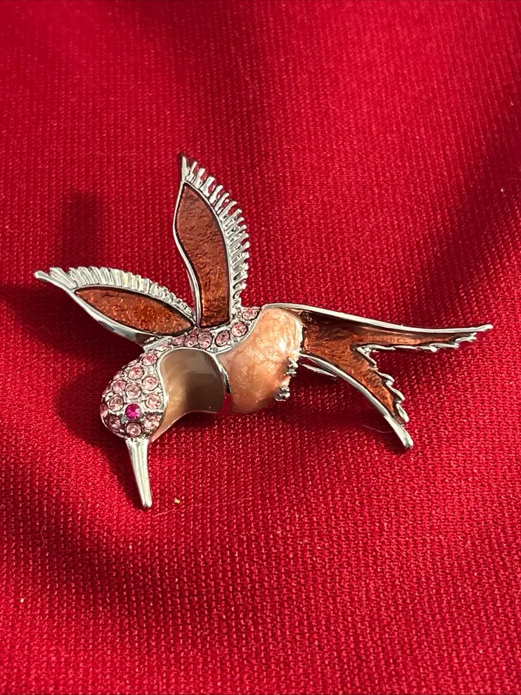 Vtg Preston & York hummingbird pink and red rhinestones enamel brooch. Please see photos. Let me know if you have any questions. Single item offers and bundle item offer seriously considered. Thank you for stopping by.