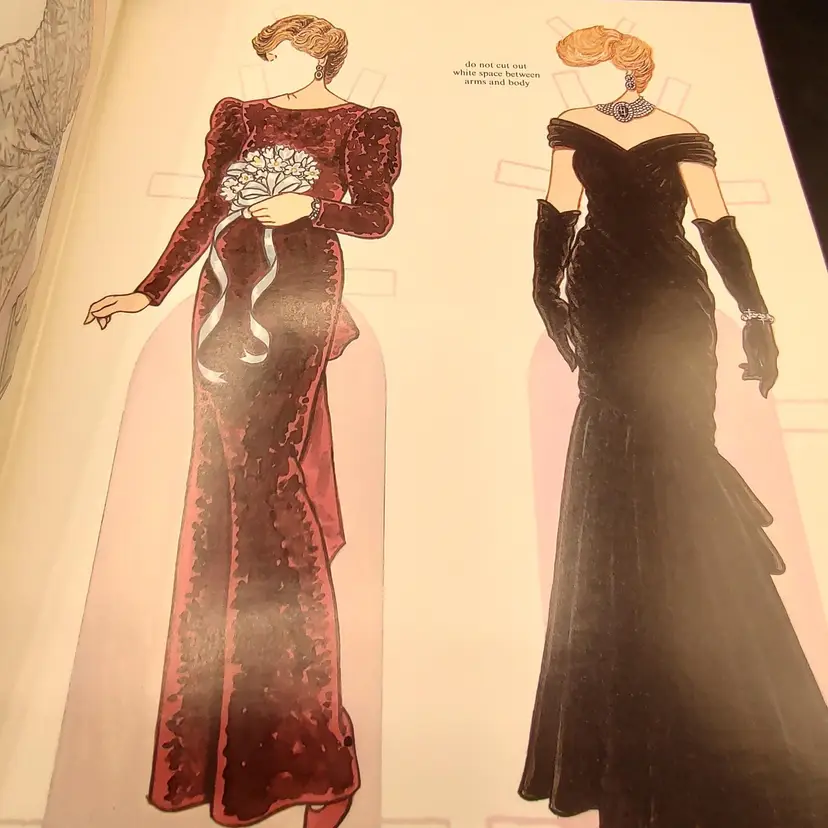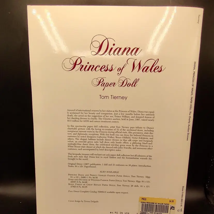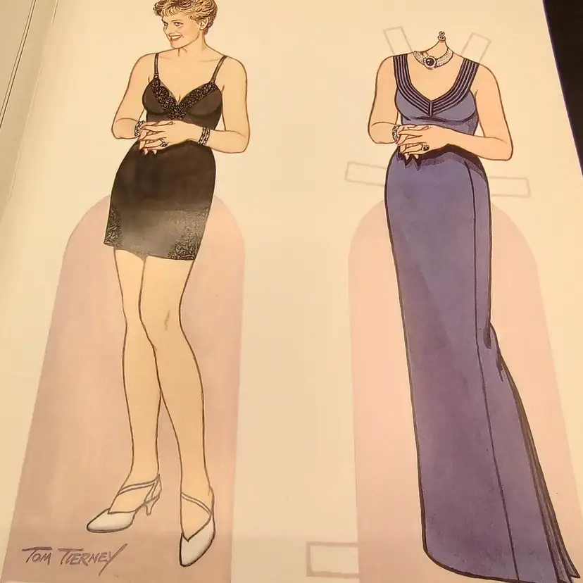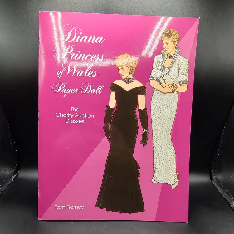 Vtg 1997 Paper Bound Diana Princess Of Wales Paper Dolls By Tom Tierney The Charity Auction Dresses 1 doll with 31 dresses on 16 plates height 12" x width 0.5" x length 9" Made in USA