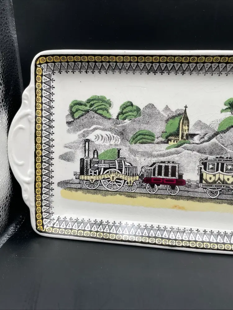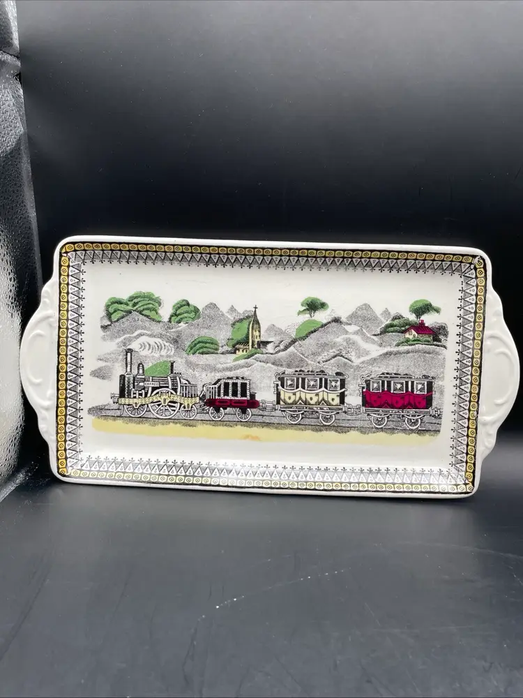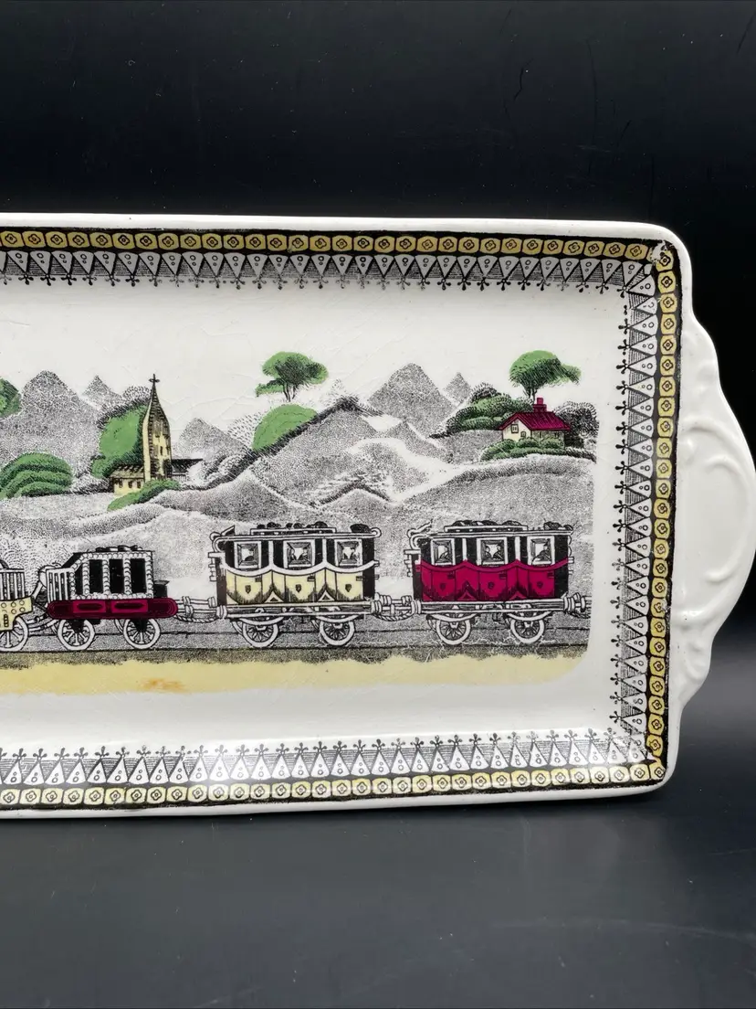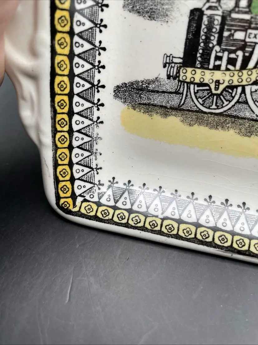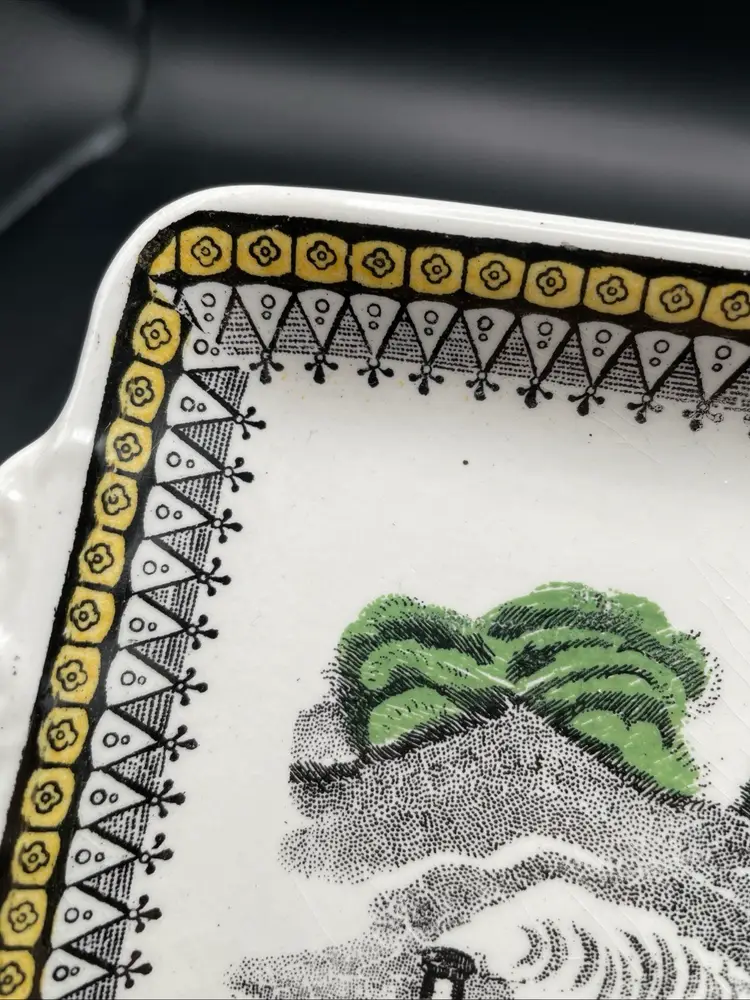 Approximately 12” x 6”. Corners where stencils meet are not perfect. Has a scratch I tried to capture in pictures and has some crazing. No chips.