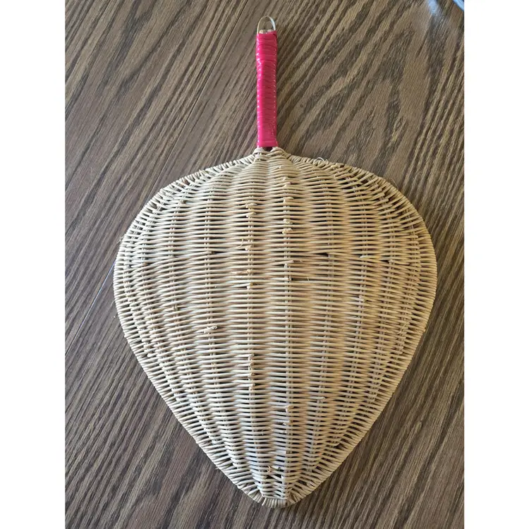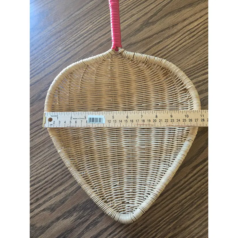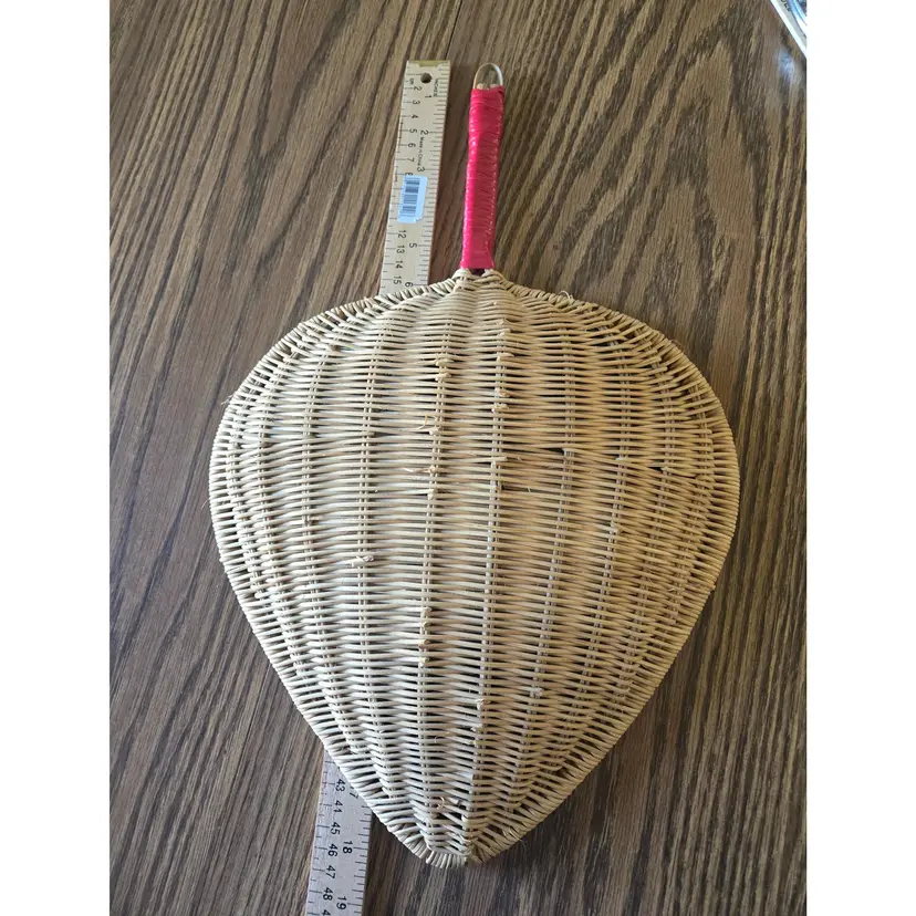 I found this leaf shaped basket in a trunk at my Dad's house after he passed away (non-smoking, no pets). I remember it being hung in our dining room in the 1950s when my mother had Asian themed wall paper. From googling I assume it would be called a rice basket which does fit with the theme she had. It could be used as my mother used it - to hang on a wall, or, possibly on a shelf to collect small items although it does not have a flat bottom.