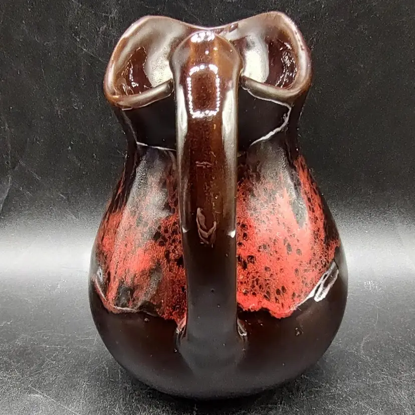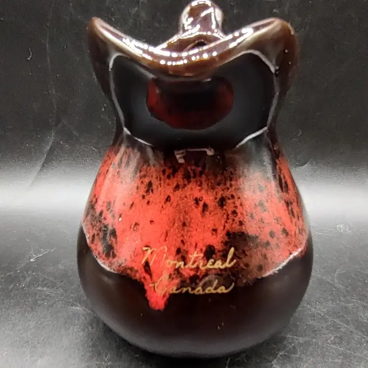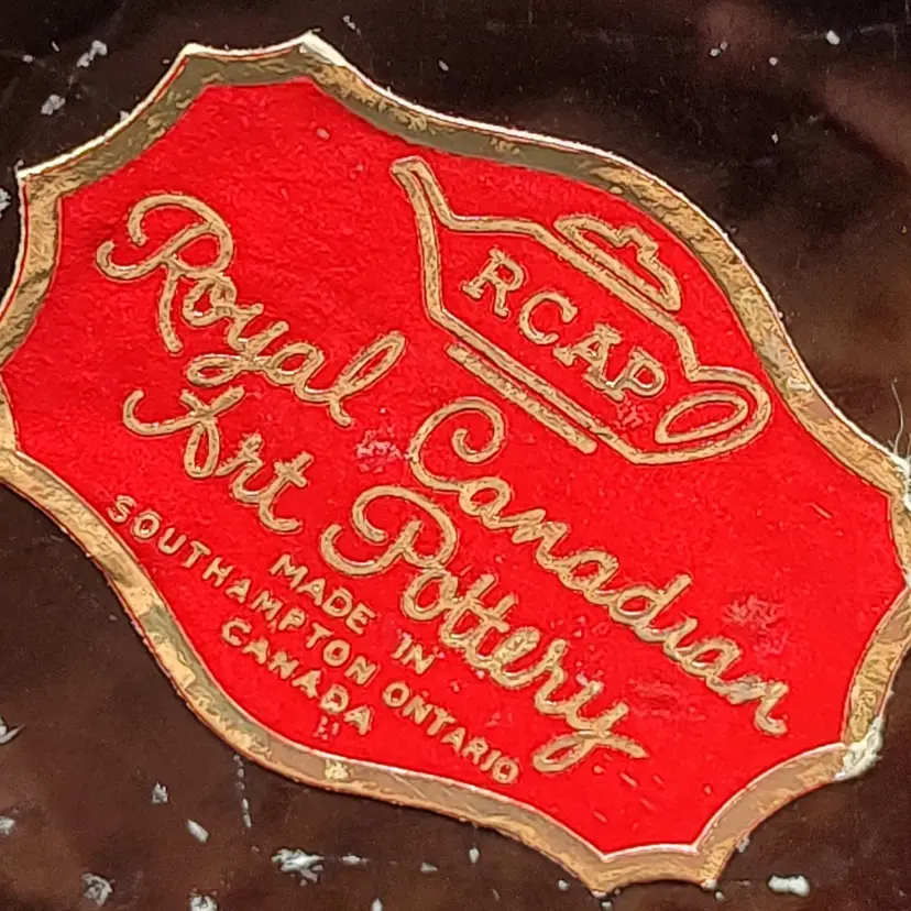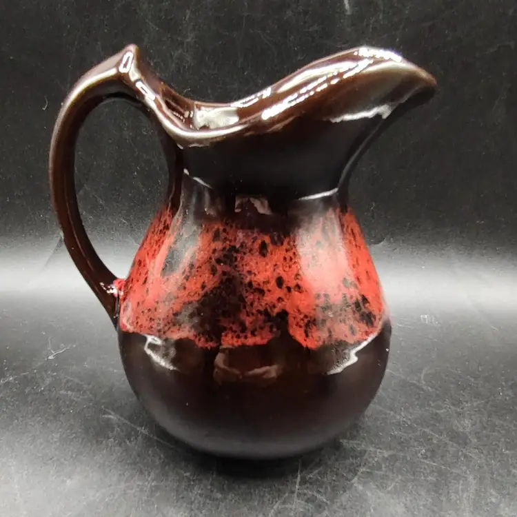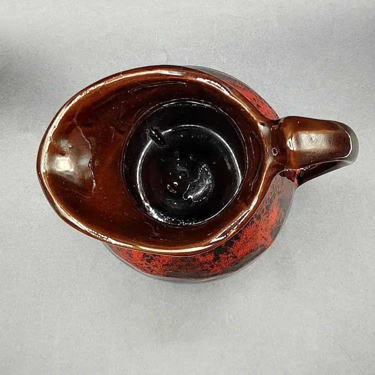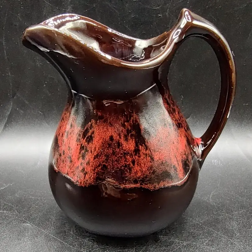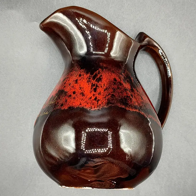 Vintage RCAP- Royal Canadian Art Pottery Pitcher Jug in good condition has flea chip on rim and some scratches height 6" x width 4.5" x length 6" holds 16 oz.Made in Ontario Canada