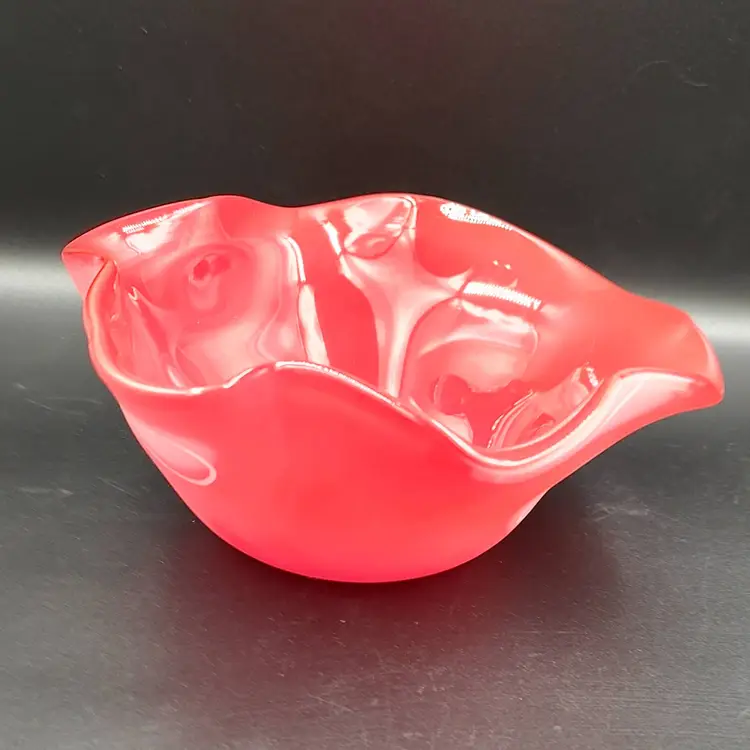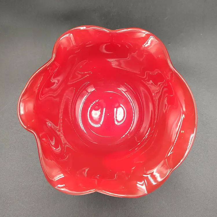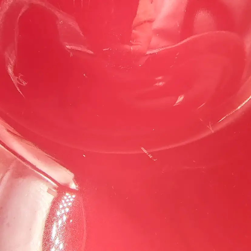 Vintage Red Art Glass Bowl With Spots Initial on Bottom. Height 3" x diameter 7". Has some scratches as shown in the pictures . Made in the USA