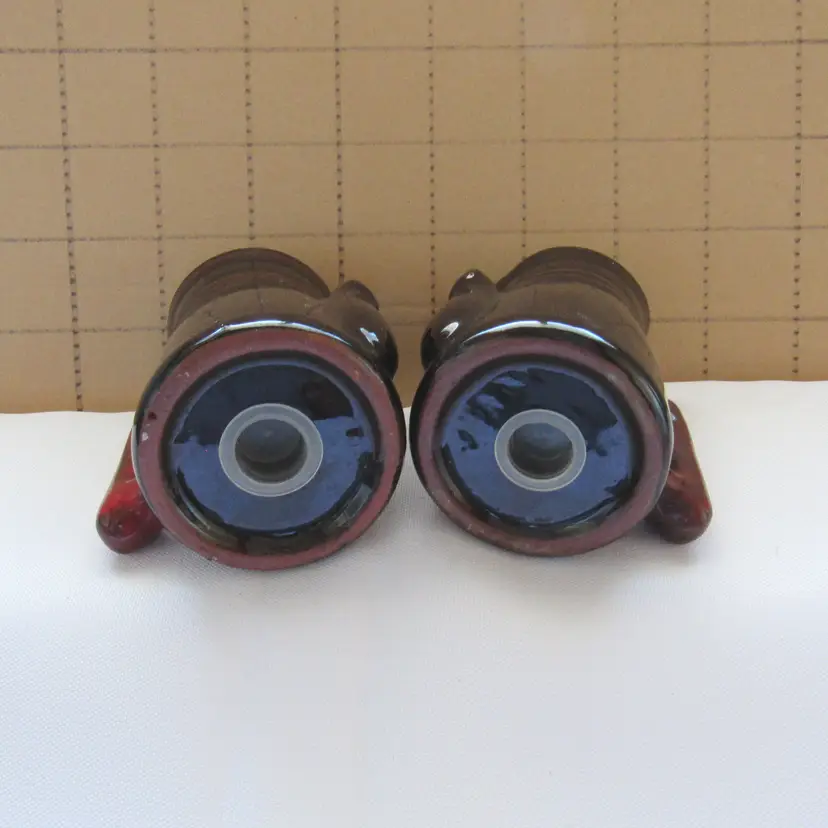 Redware Coffee Pots No marks - No issues Squares on backdrop = 1" for sizing