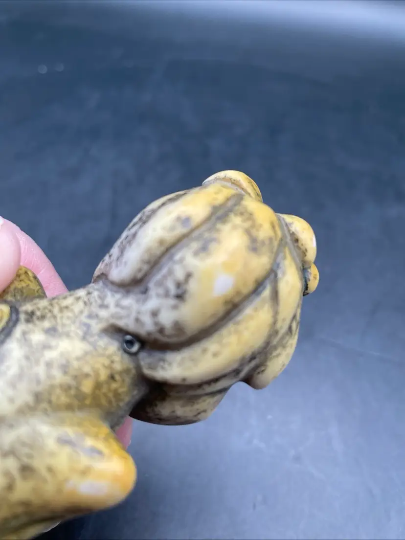 Approximately 2.75” tall x 1.5” wide. Has a manufacturer’s hole on the back of his neck. See pictures.