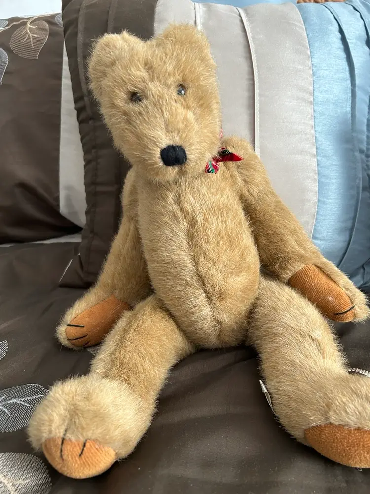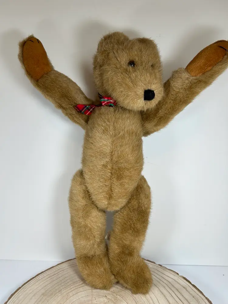 Vintage and retired, this is Boyd's Bears "Bubba" The Grizzley Bear. He's jointed and his head swivels all around. He stands approximately 16" tall, has the Grizzley bear hump on his back. He's either from 1990 or 1996, the hang tag poked through the last number so I'm not positive but he's from the 1990's for sure. No rips, tears, stains, sold as shown and ready for some bear hugs. Please see all photos.