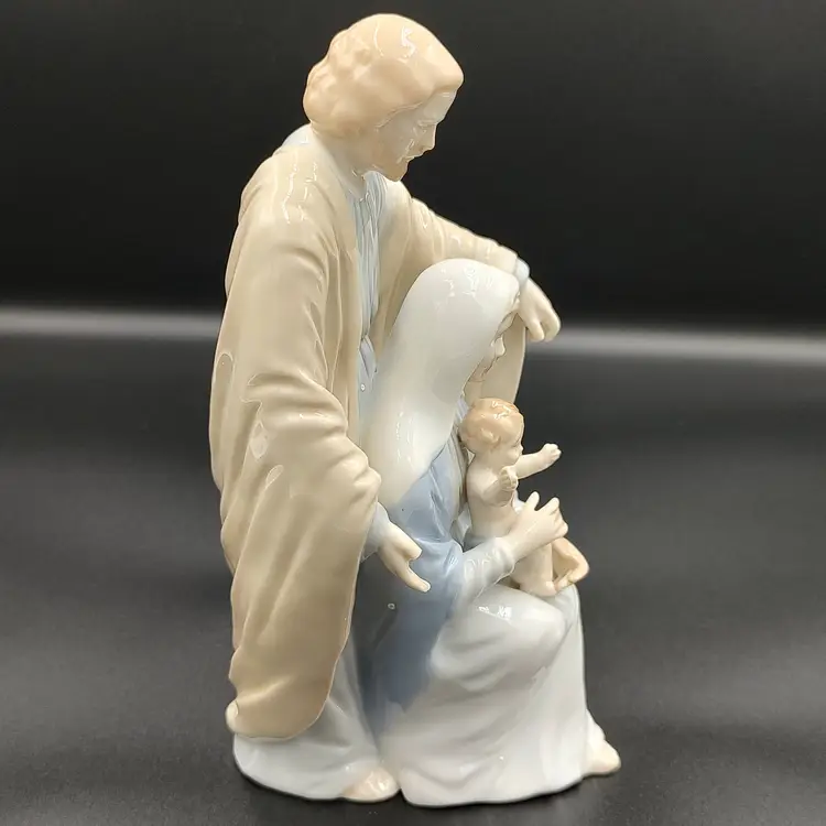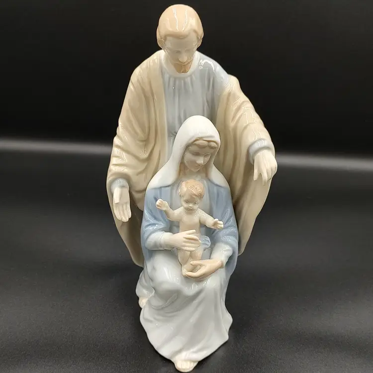 Vintage RR Roman The Valencia Collection Holy Family Porcelain Figurine. Circa 1984. Height 7.5" x width 4" x 3.5". Made in Japan. Jesus has a chip to his thumb see pictures for details