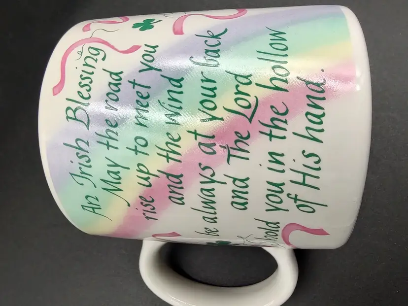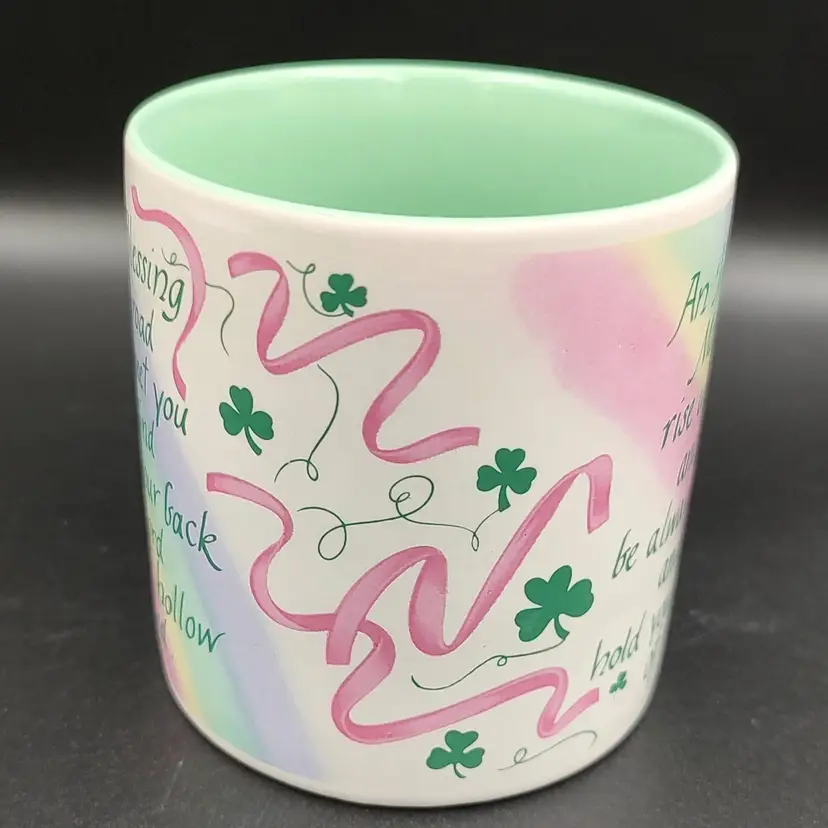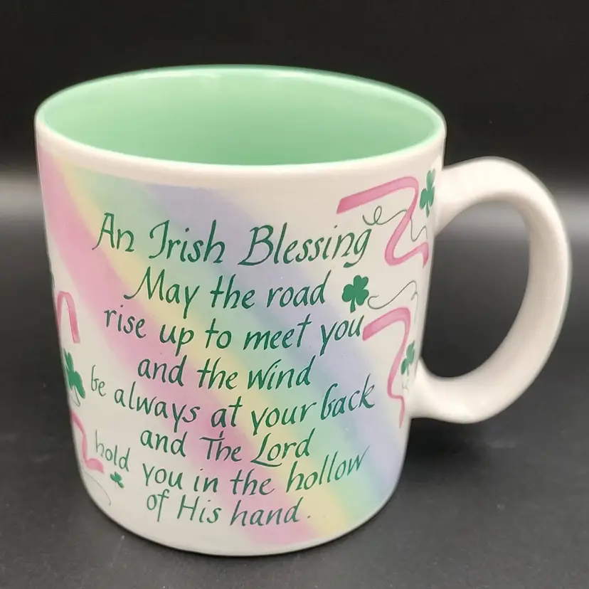 Vintage 1980-1990 Russ Berrie Company An Irish Blessing Ceramic Coffee Mug. Height 3.5" x diameter 3.5" holds 10 ounces Made in China