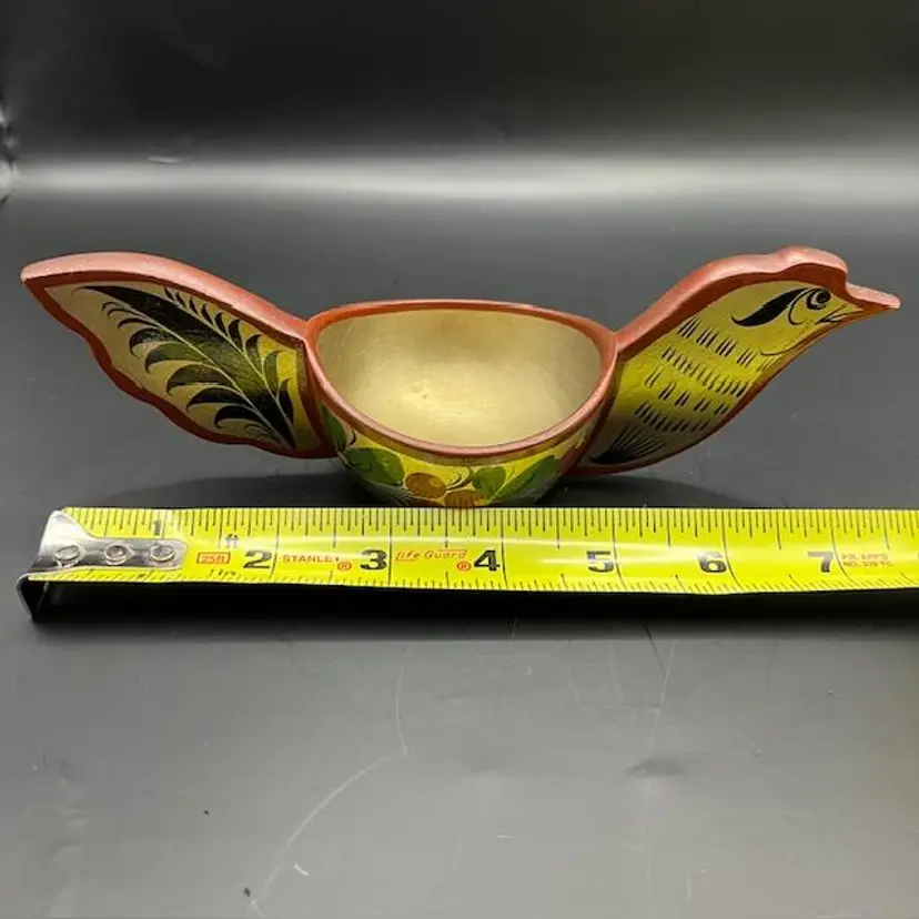 7.5" long x 3" wide x 2.75" tall - in good vintage condition. Vintage Russian decor