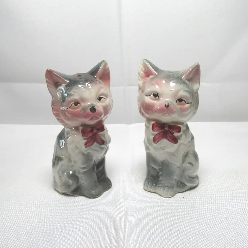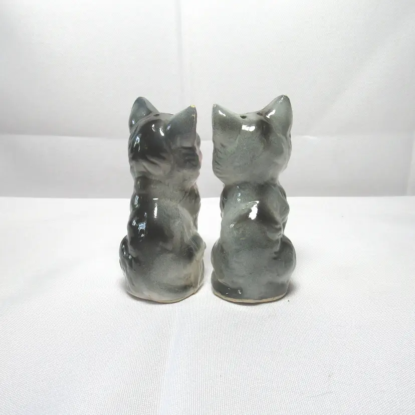 VTG Sad Gray Cats Salt & Pepper Shaker Set