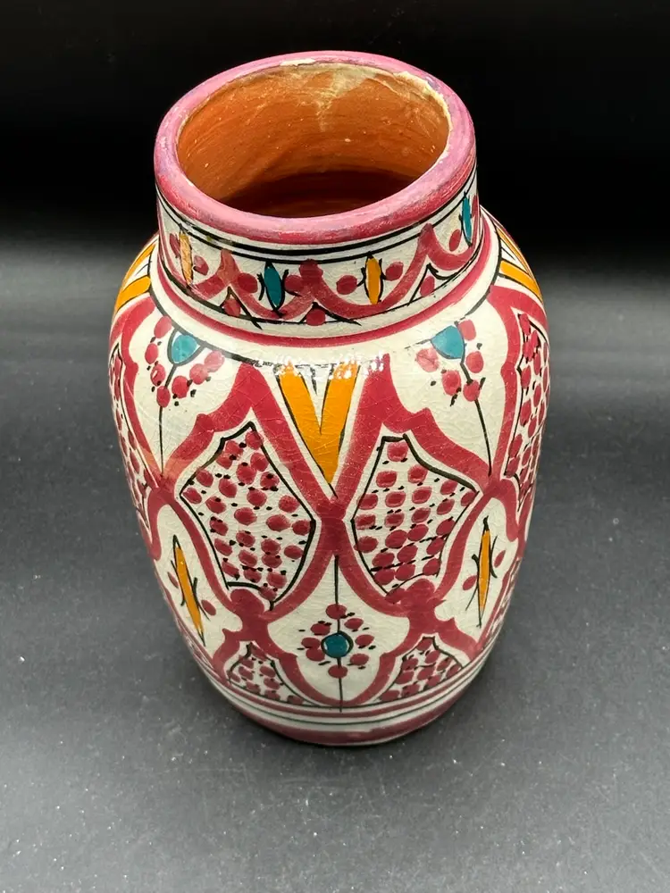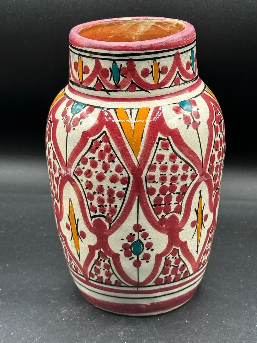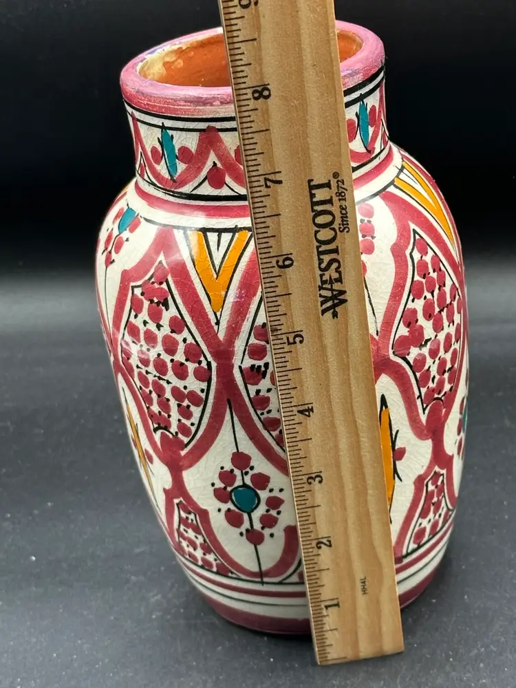 Vtg Safi Art Pottery Vase Hand Painted Art Deco Inspired Made in Morocco