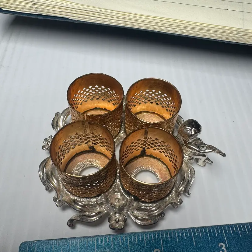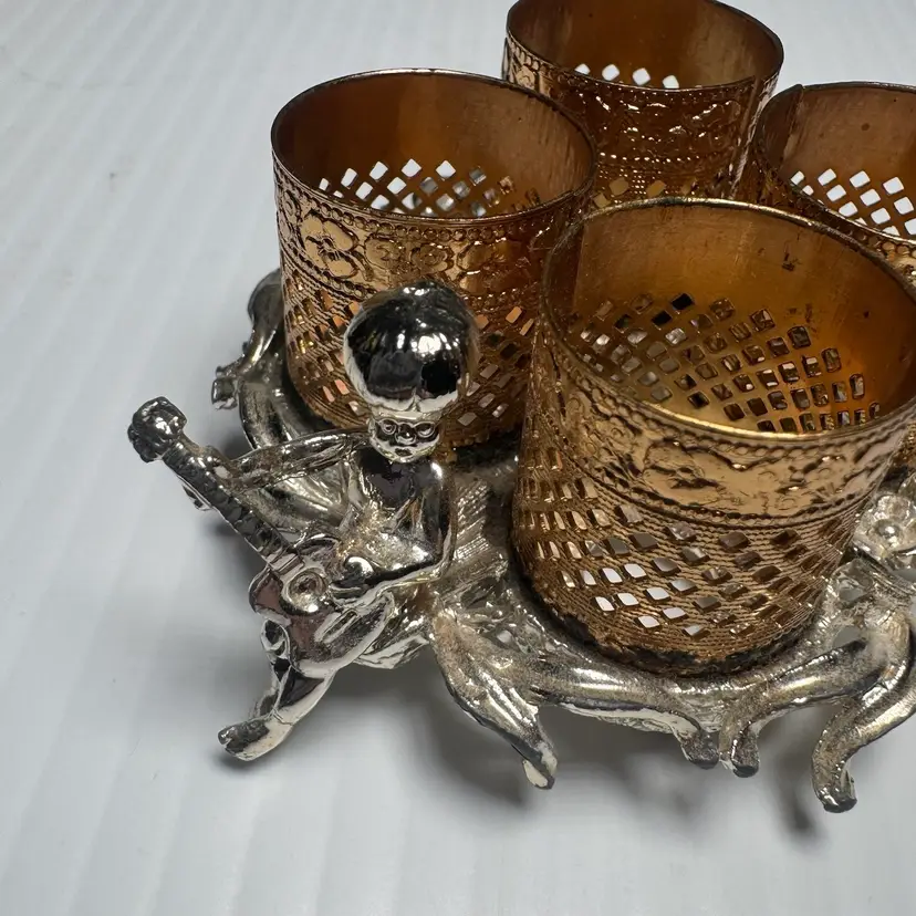 Vtg Sam Fink Vanity Tray Silver Boy & Guitar Ormolu Filigree Lipstick Holder