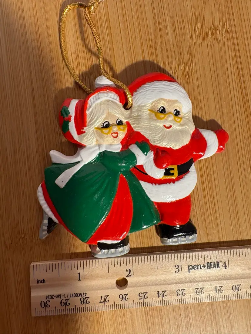 VTG Santa & Ms Clause Ice Skating Ceramic Handpainted Christmas Holiday Ornament