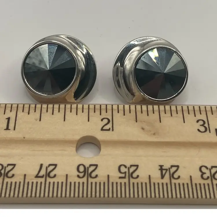 These are very nice clip on earrings that have a beautiful sparkle. They are just over 3/4” in diameter, making them a nice size.