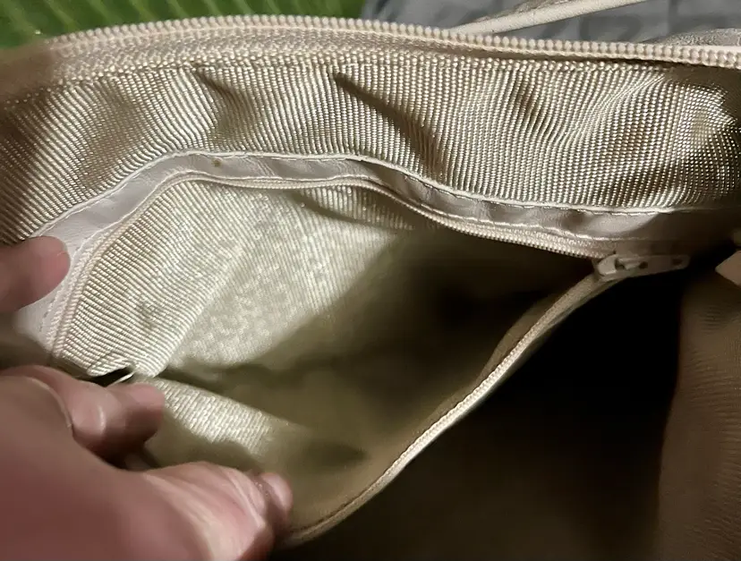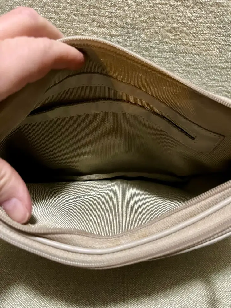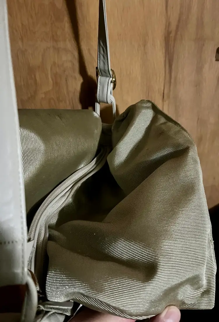Please look at all the photos prior to deciding to make a purchase. This is a gently used / pre-owned item. And, VINTAGE (20 years +) is seldom perfect. The lining was damp cloth wiped down and pulled inside-out to dry as shown in photos. Not perfect. There may be loose threads on the strap or authentic wear - photos are strongly encouraged to review before a decision to purchase in its condition, as my interpretation may not align with yours. Prior to a purchase, questions not answered in photos, details, description are welcome.