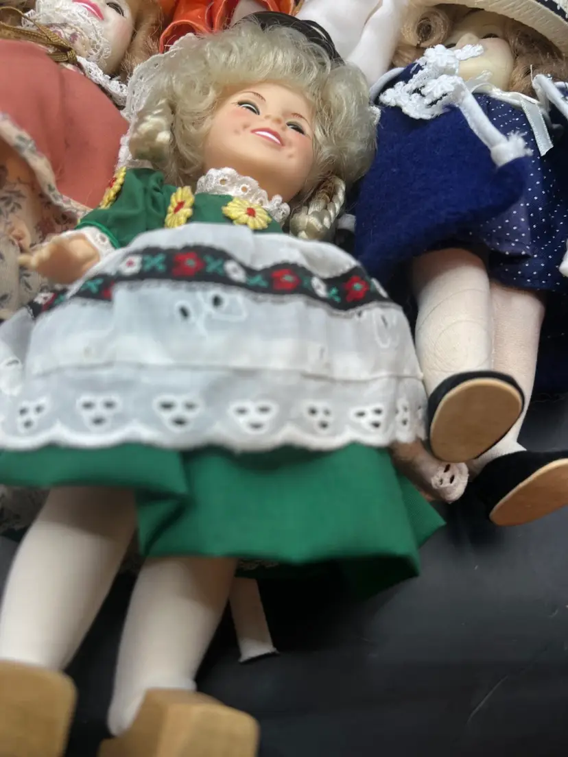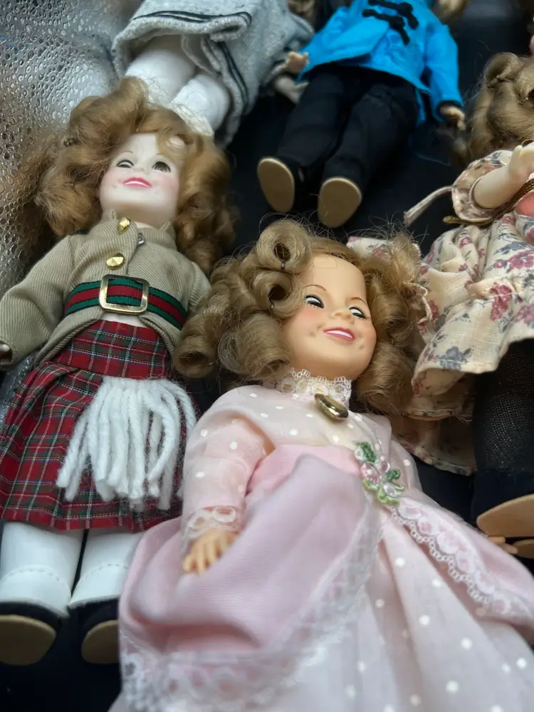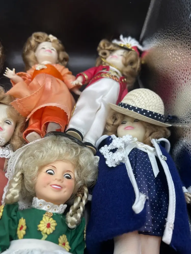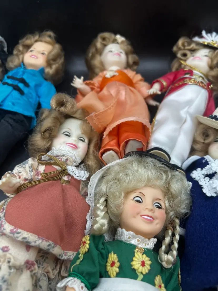 A group of vintage Shirley Temple dolls, good condition some have shoes and some don’t but otherwise nice group of her dolls from her movies to start a collection approximately 5.5 inches tall pre owned smoke free pet Brandy home