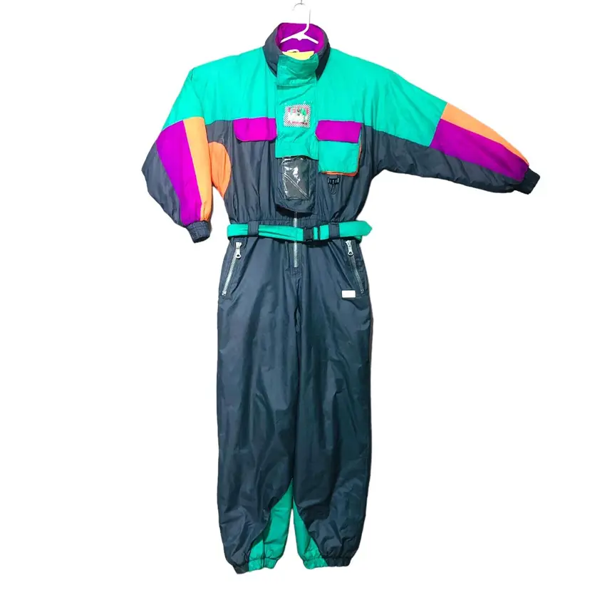 VTG Ski Snow Suit Womens Size S/M Retro 80s 90s Neon Teal Purple Orange READ