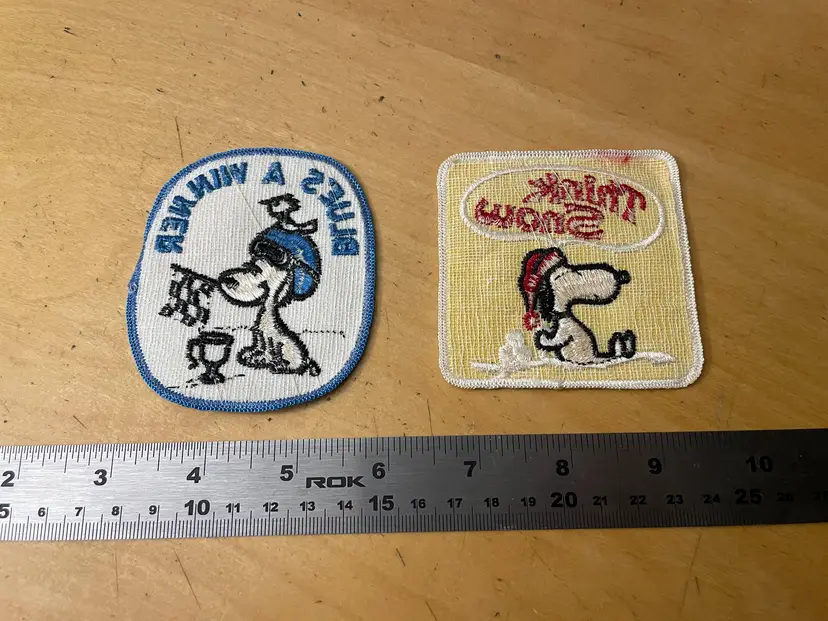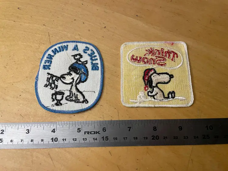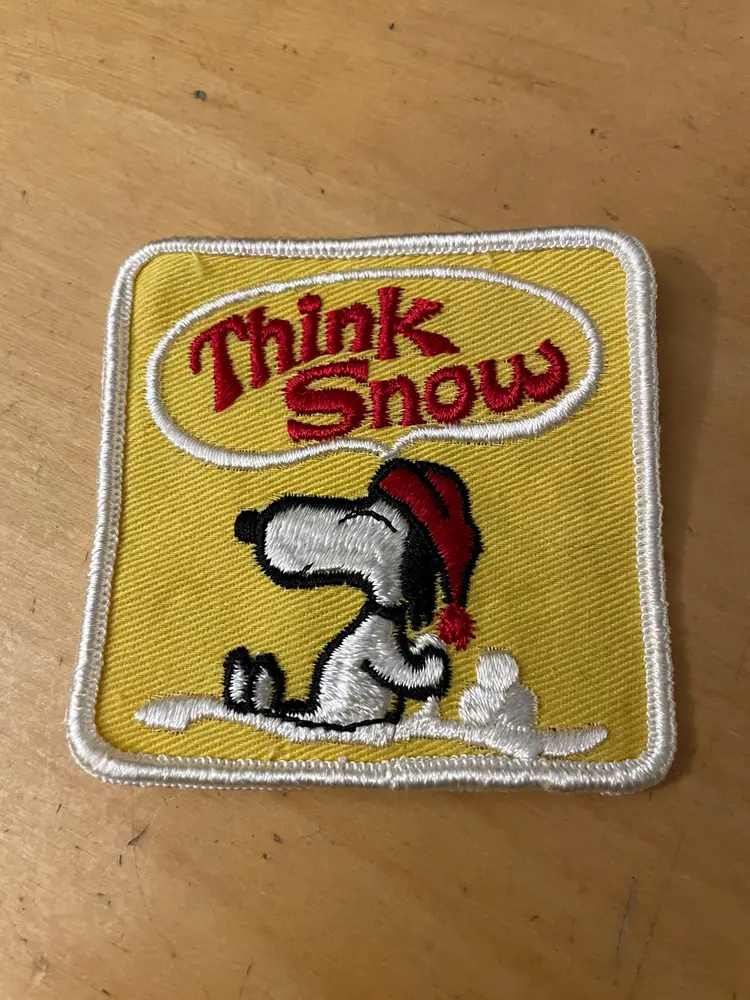 Vtg Snoopy Think Snow Winner Embroidered Patch Lot 2 Peanuts Skiing Snowmobile New Old Stock, Light shelf wear but high grade new old stock.