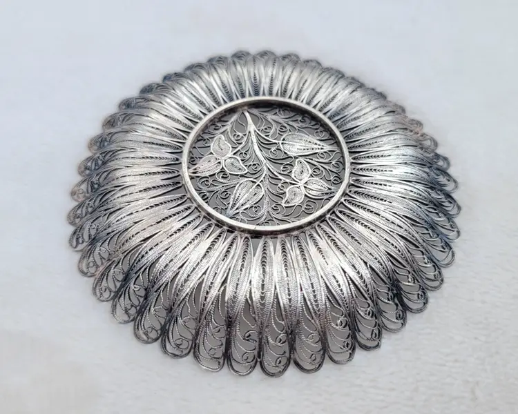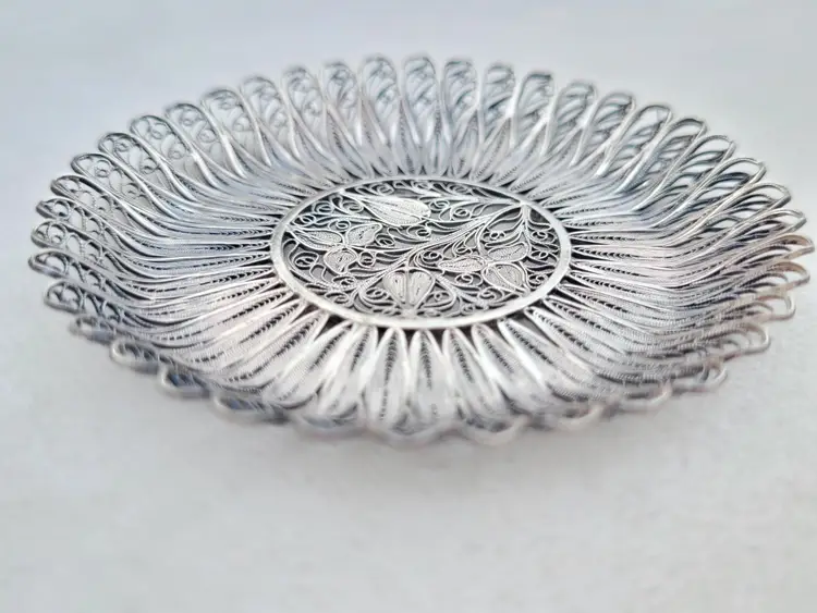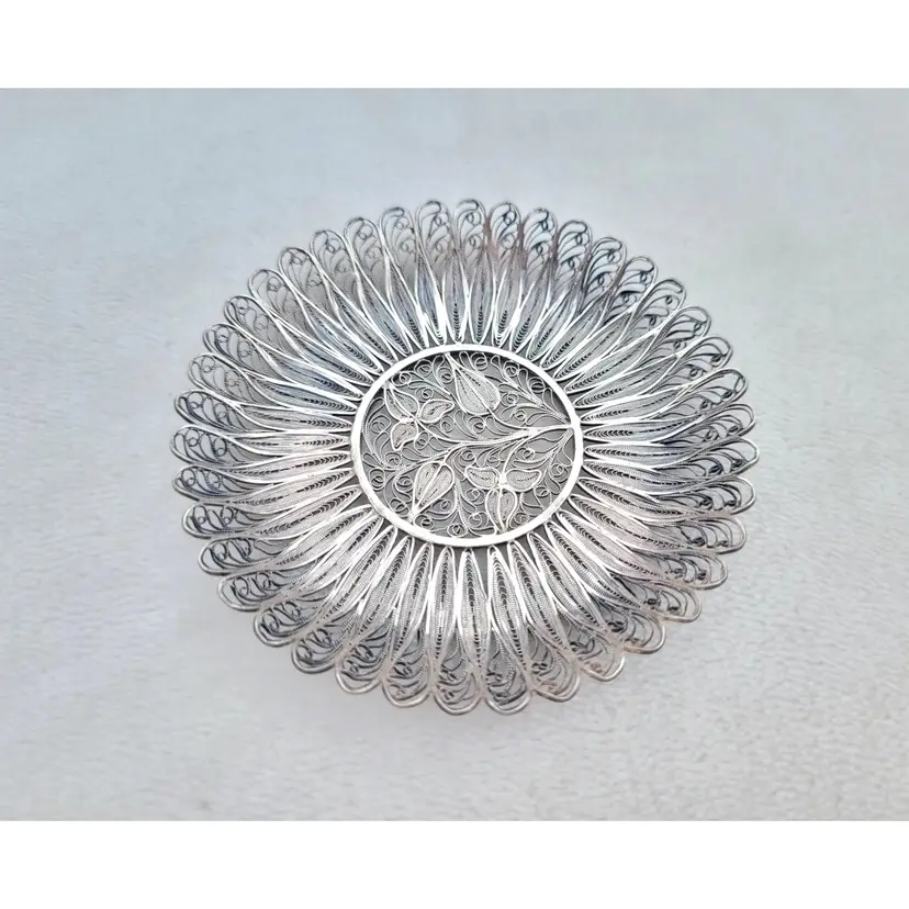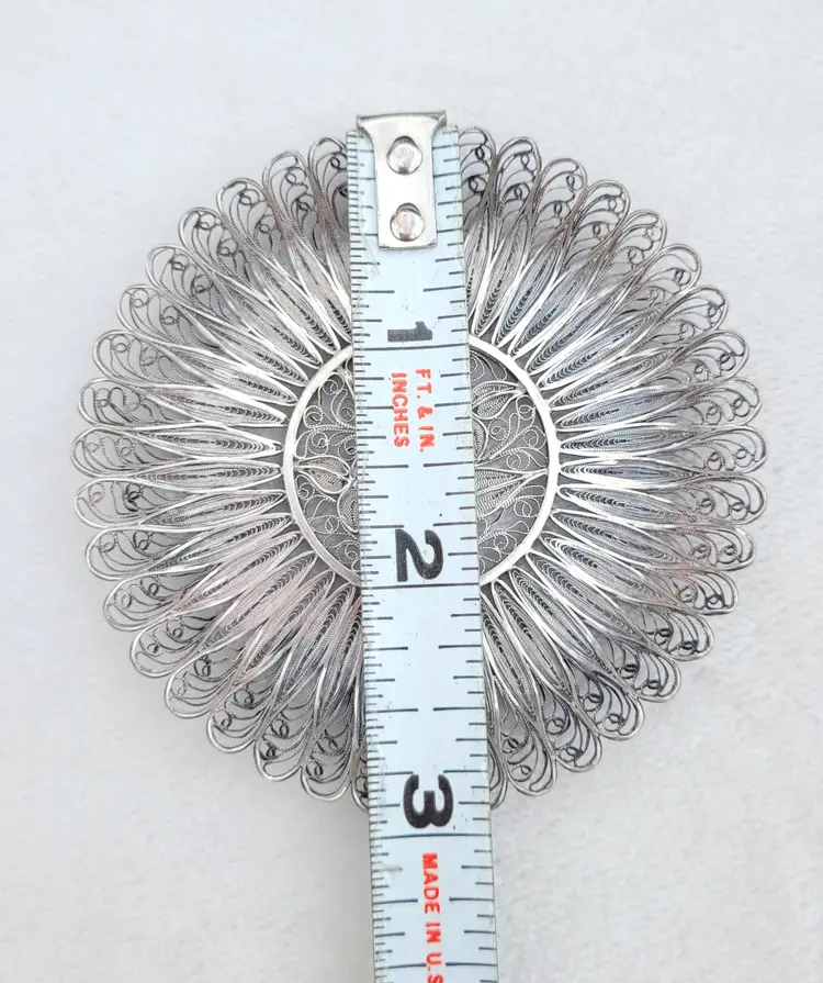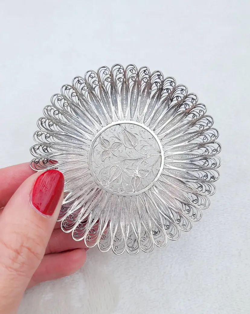 Beautifully intricate little cannetille tray, most likely a drink coaster and estimated to be 1910s/20s. It it's unmarked but tests as pure sterling, with a total weight of 18.73 grams. Please see pictures for details and measurements.