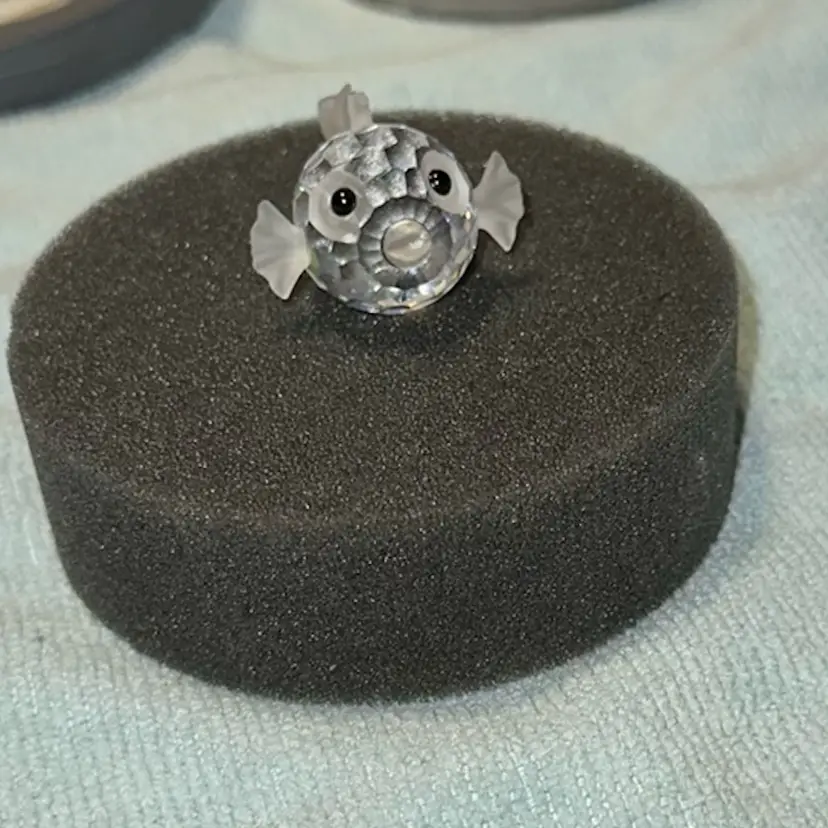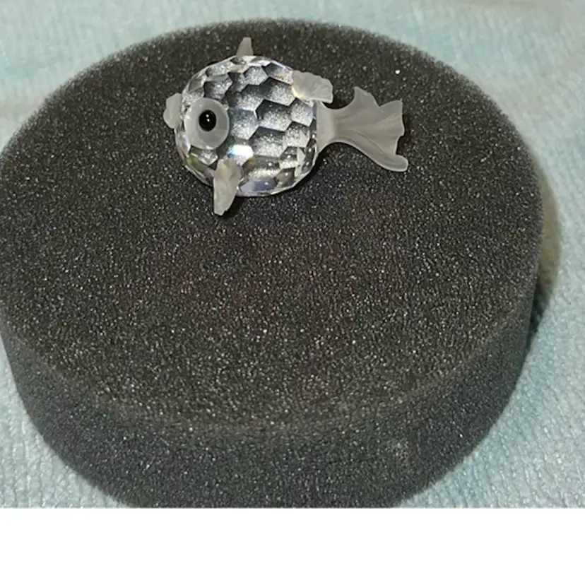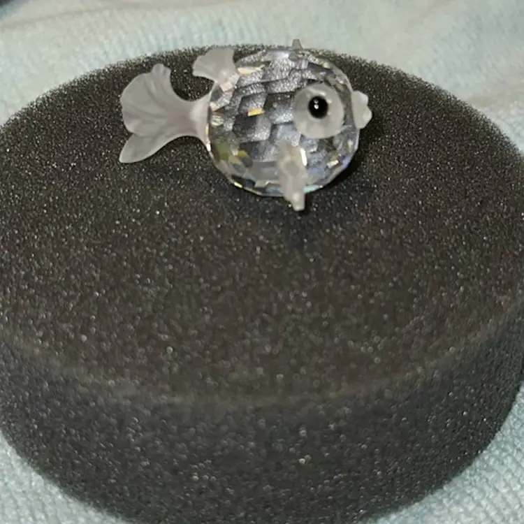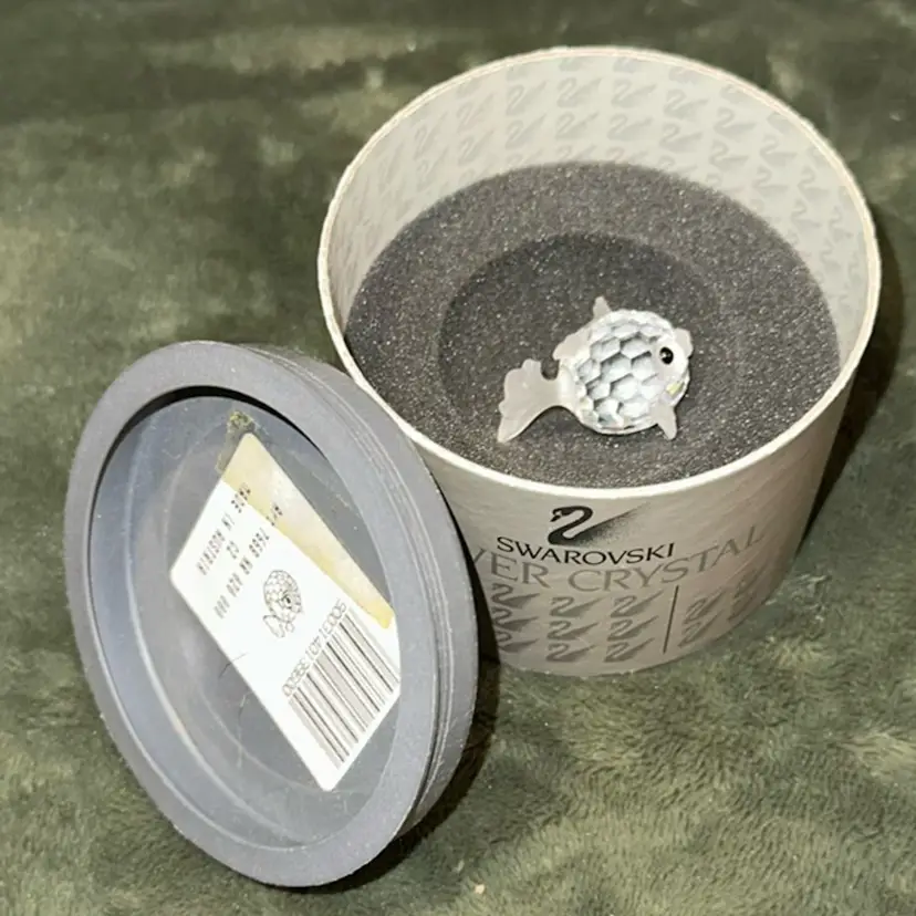 This delightful puffer fish comes in the original box. Fish is marked on the bottom with the Swarovski swan, although it was difficult to get it to show up on the pictures. No. 7668 NR 020000 C2.