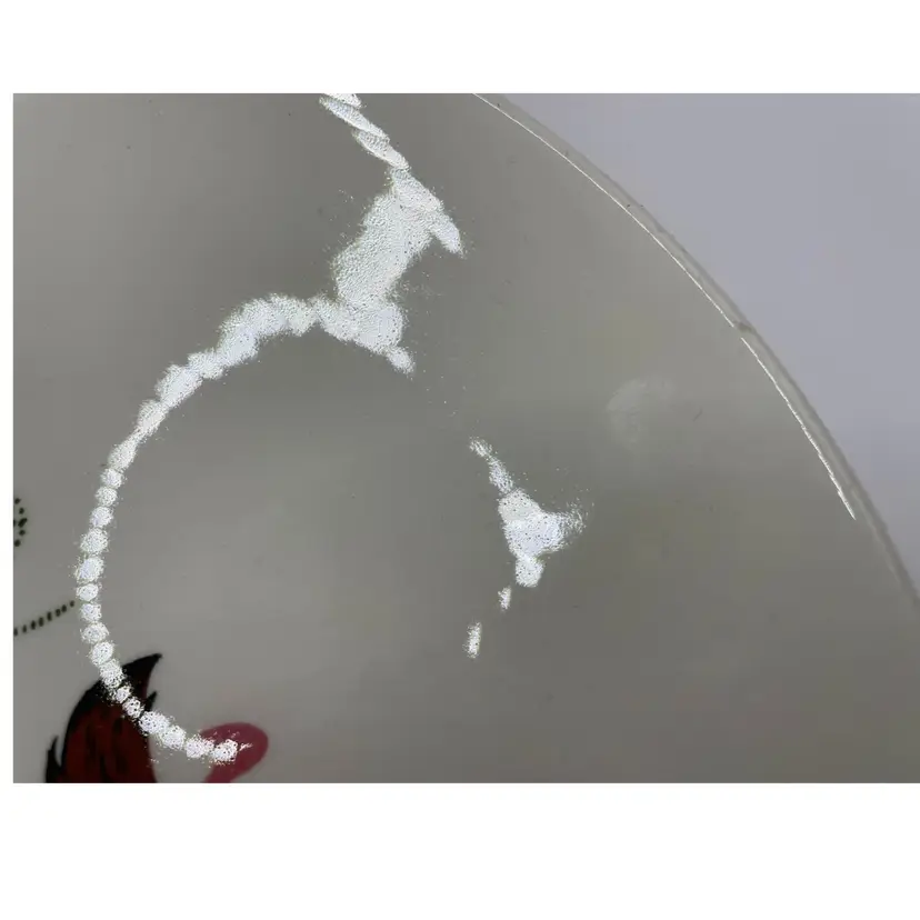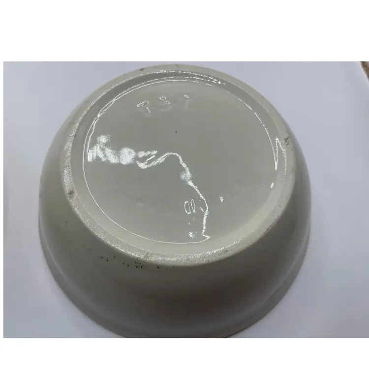 One bowl has a flawed outside where the clay cracked during firing. Bowls have stilt marks from kiln on bottom. There are imperfections but graphics are nice & bright with a beautiful color way. This set is great for display.