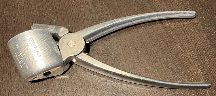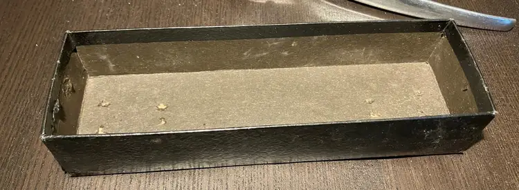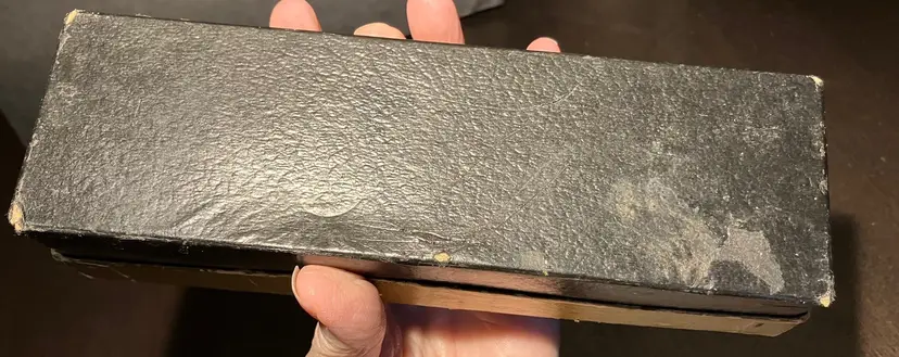 No chips, cracks, or rust. In great condition. The box it comes in is very worn. Overall this measures 7 1/2" by 2 1/4">