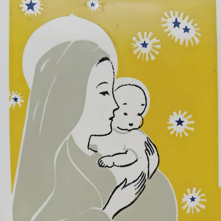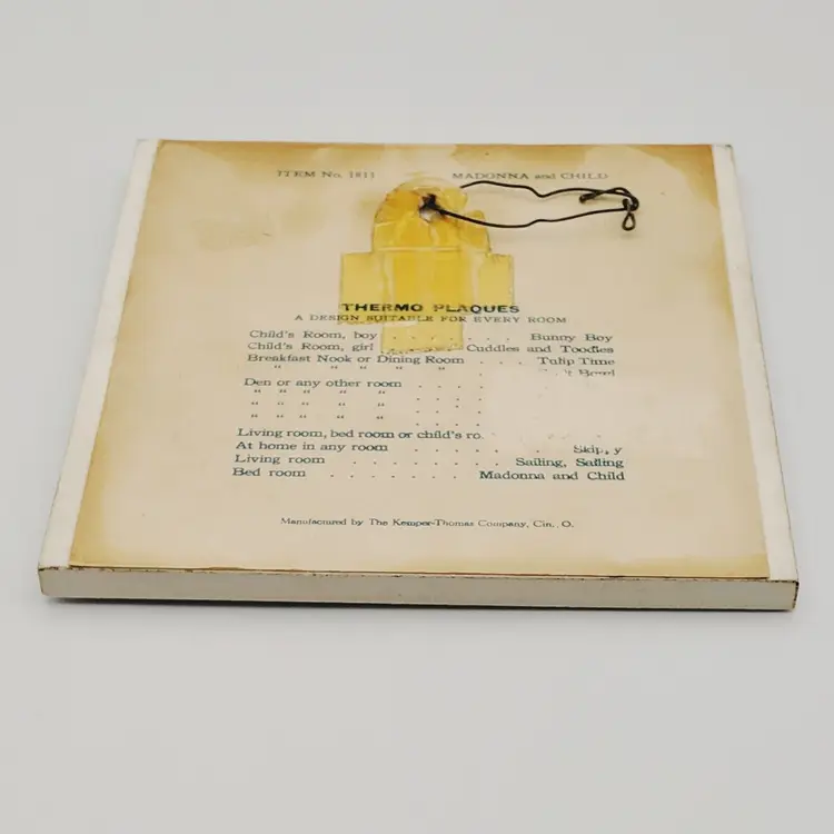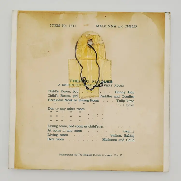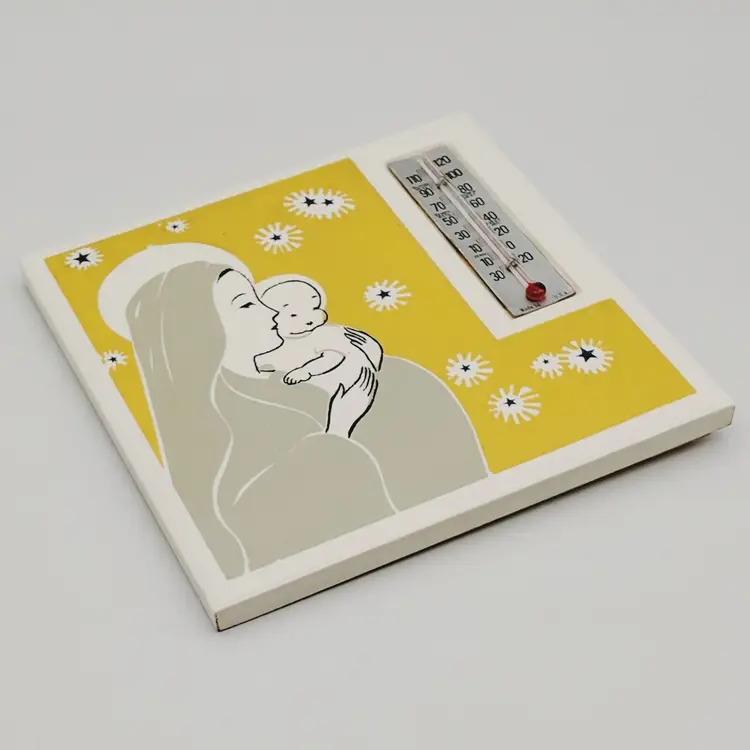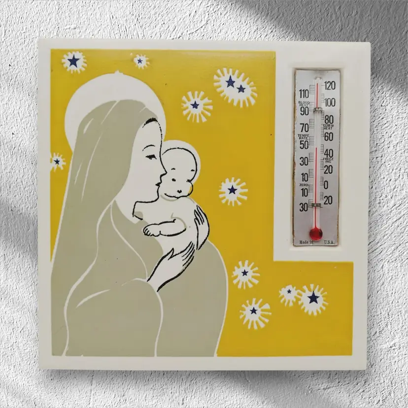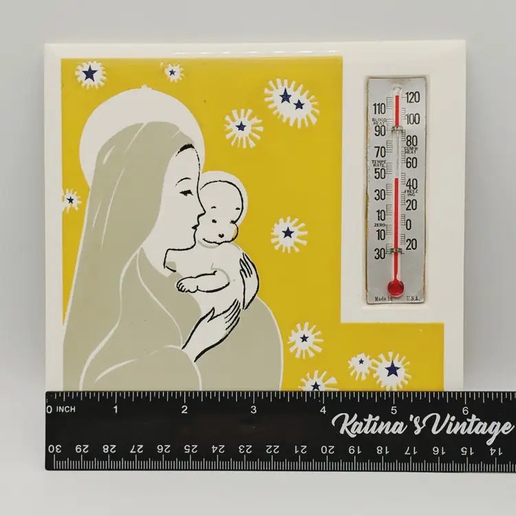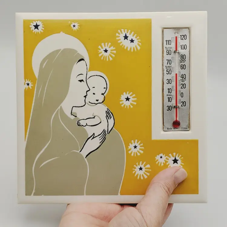 Vtg Thermometer Madonna & Child Square Tile Kemper-Thomas Co Pop Art READ