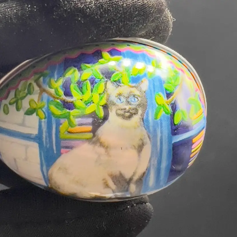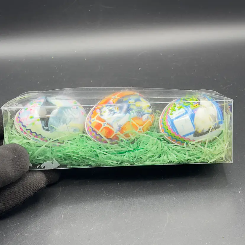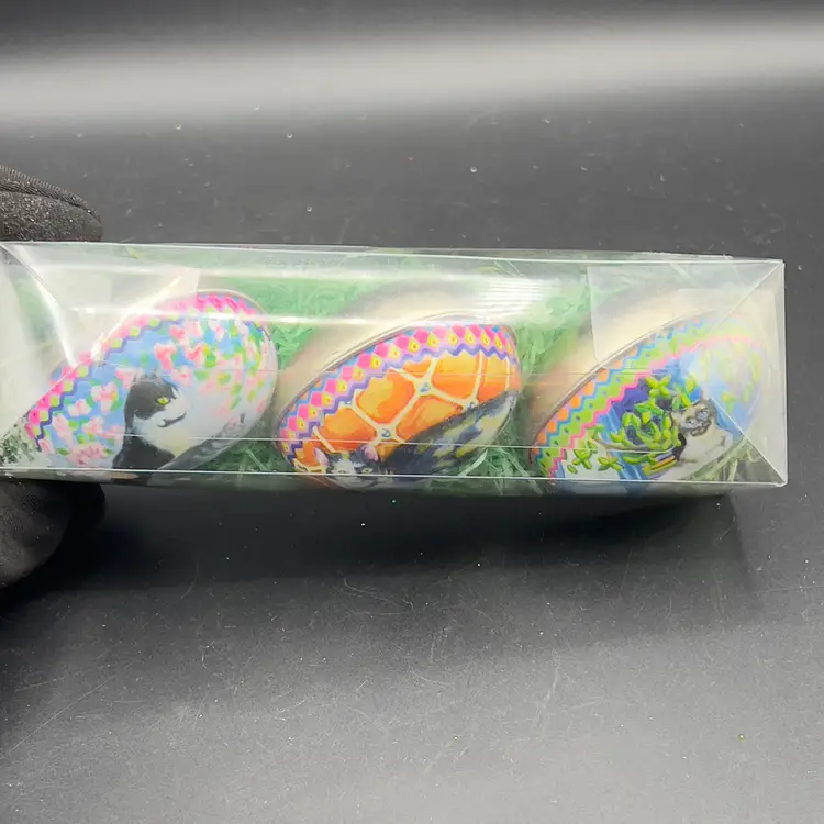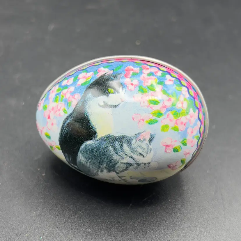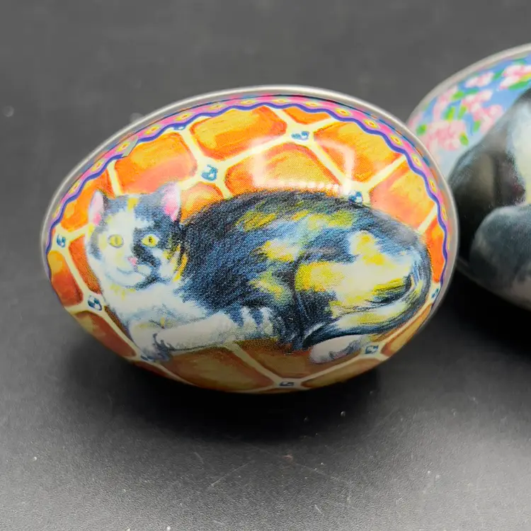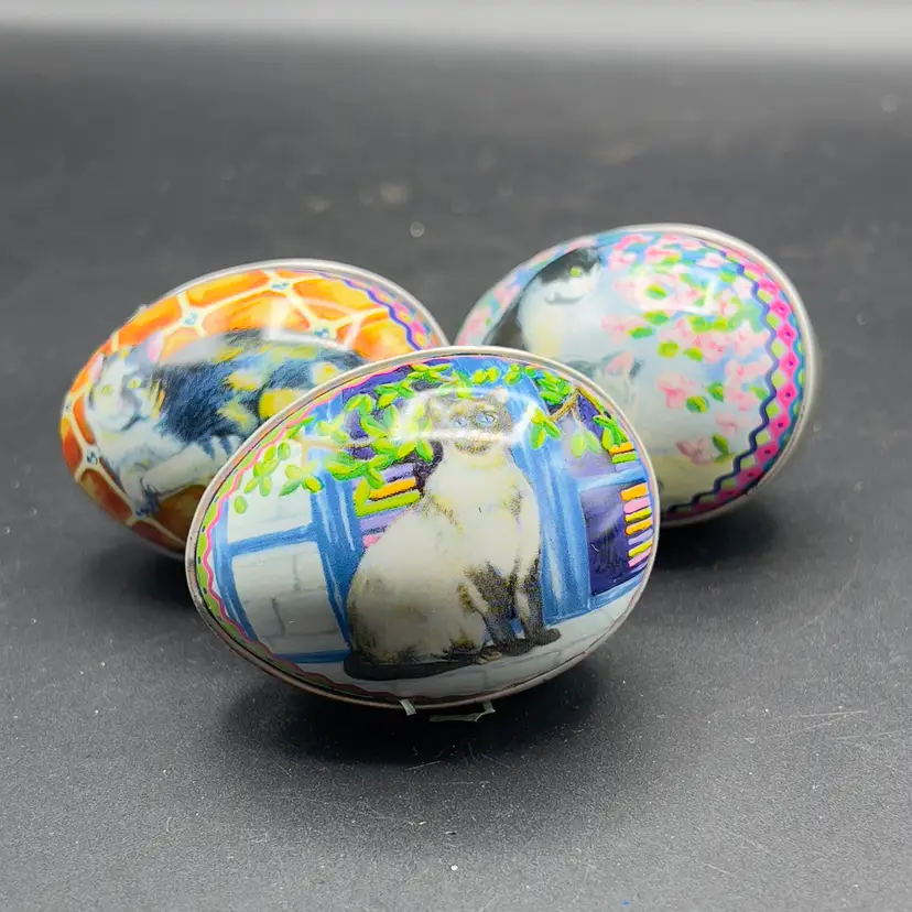 VTG Tin Metal Easter Egg Container w/ Kitty Cat Design Calico Tuxedo Set of 3 Set of 3 vintage tins with Kitty Cats.