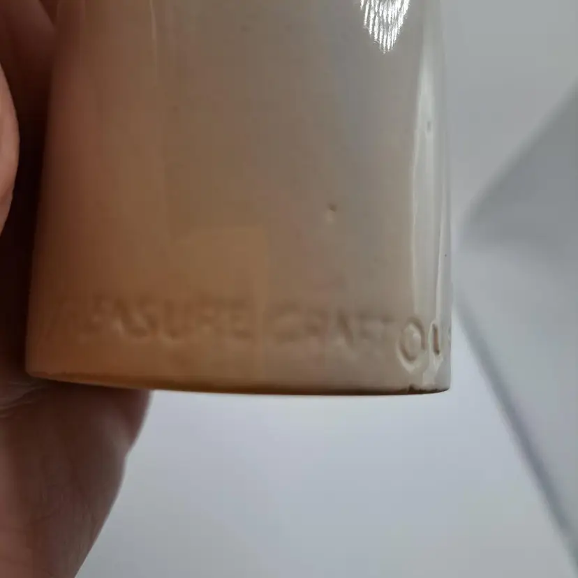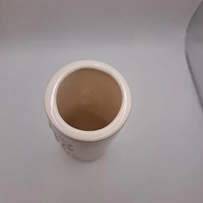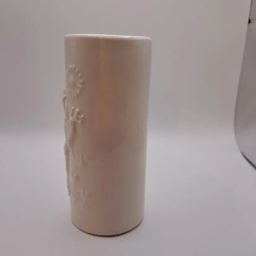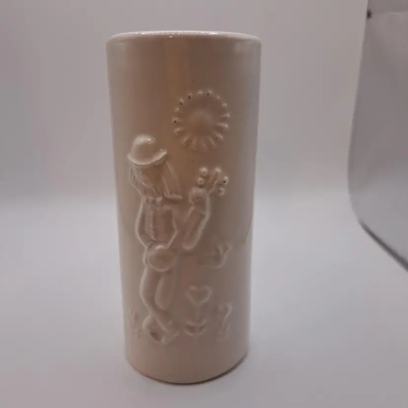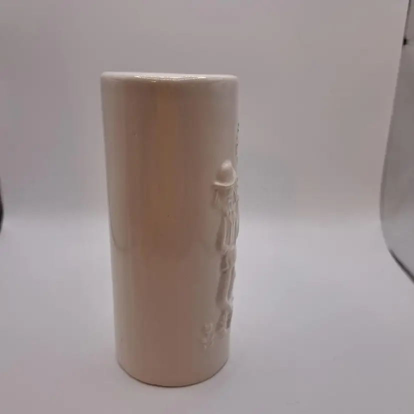 Features guitar banjo player outdoors on a sunny day Monotone white glaze 5" tall No chips or cracks