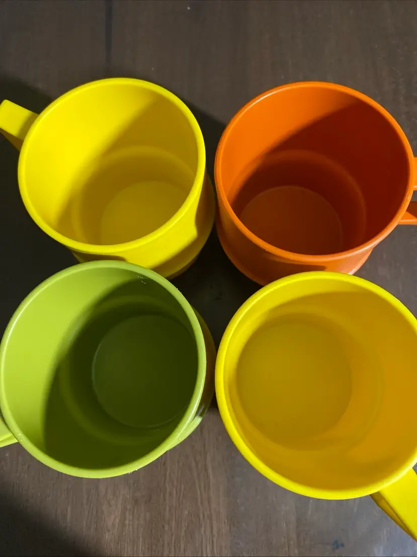 Vtg Tupperware coffee mugs NO LIDS Great for camping. Or just sitting on the deck or under your favorite tree.