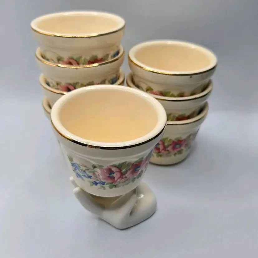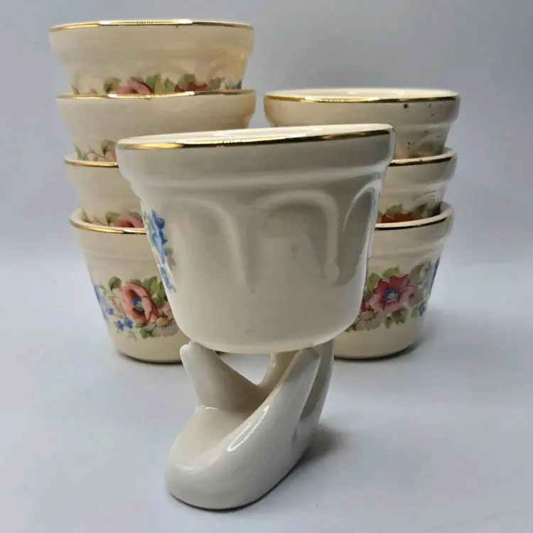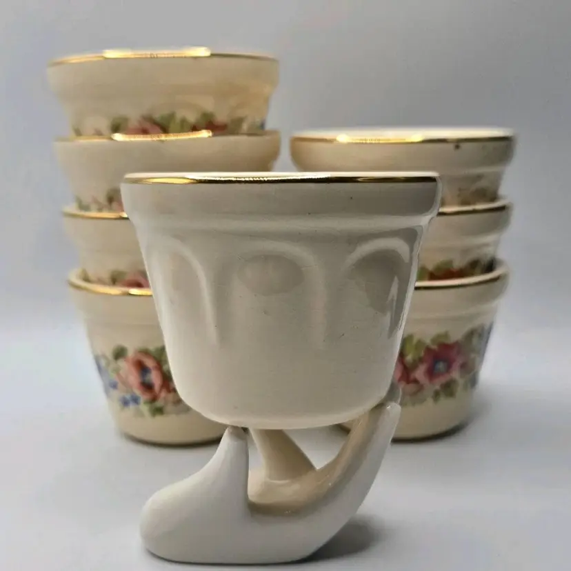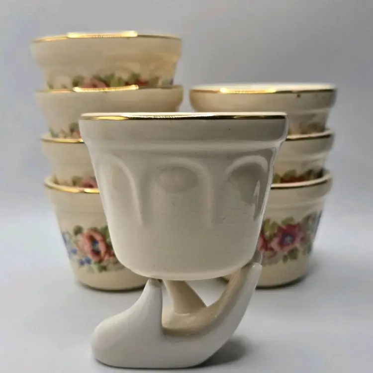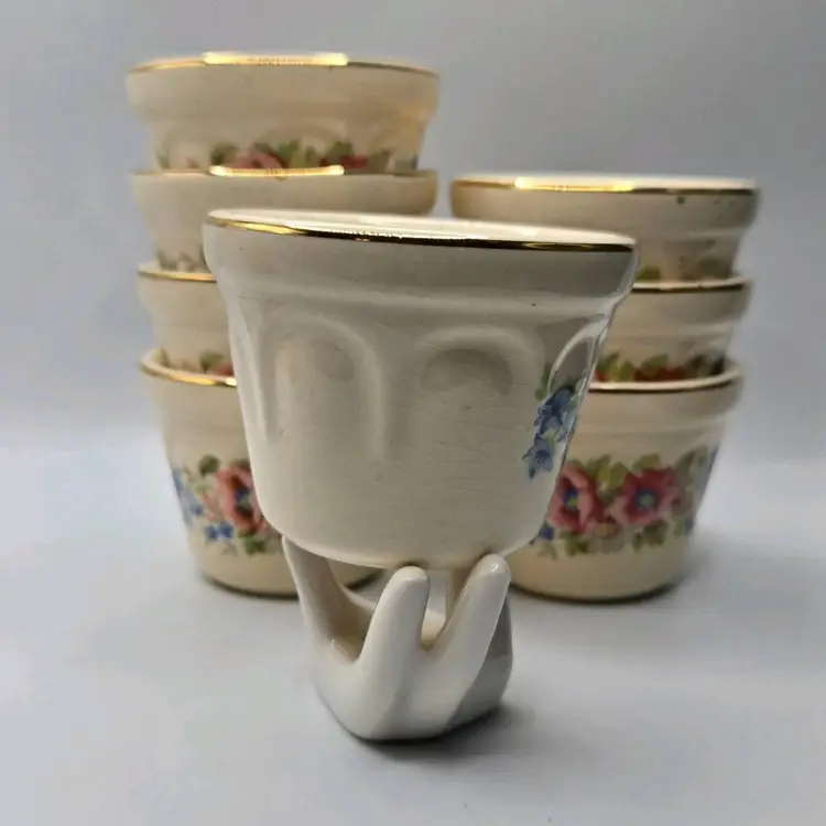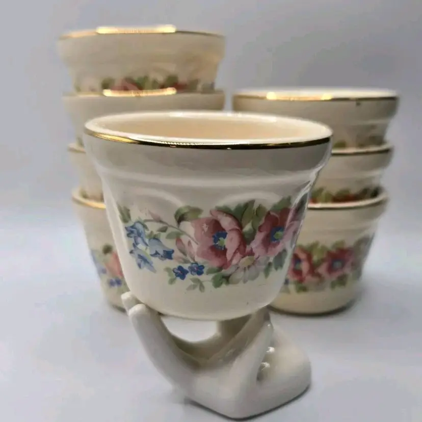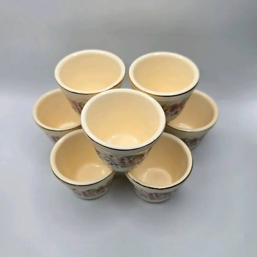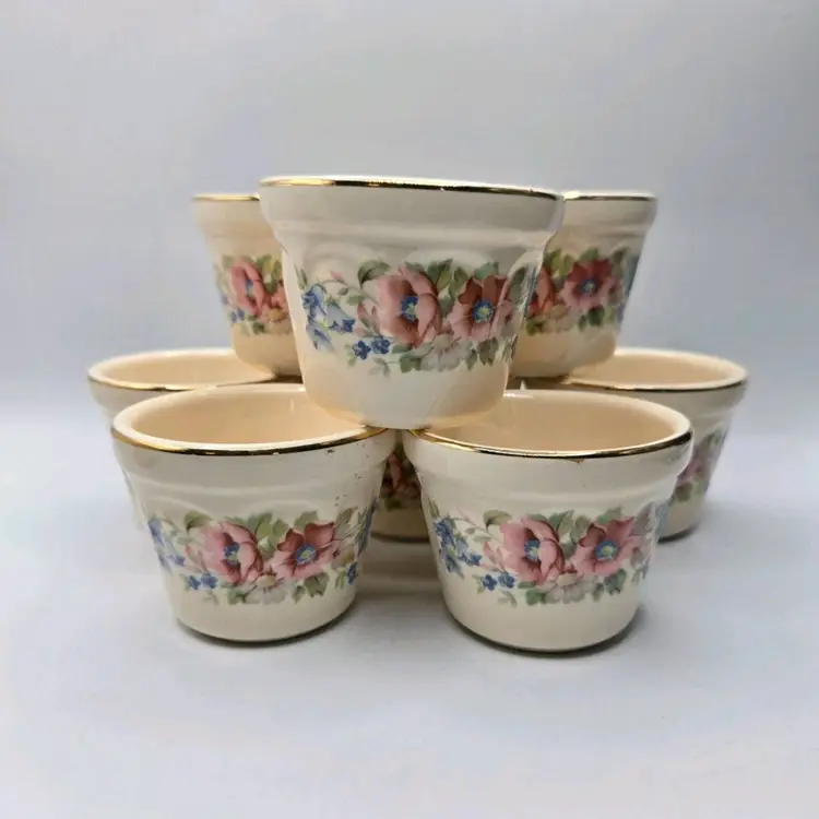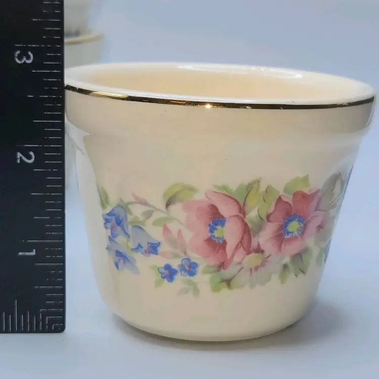 Vtg Universal Cambridge 22K Gold Trim/Floral S/8 Dessert Custard•Berry Cup Bowl
