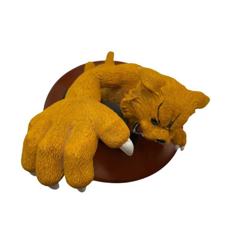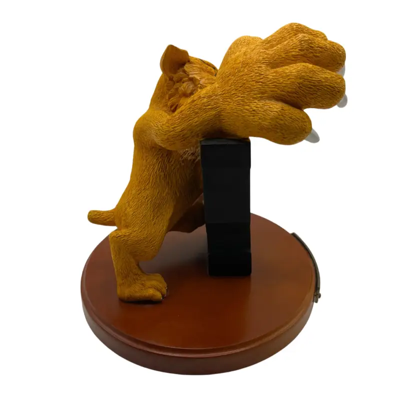 Wooden base. Resin figure. Approximately 5” H x 6” L x 5” W.