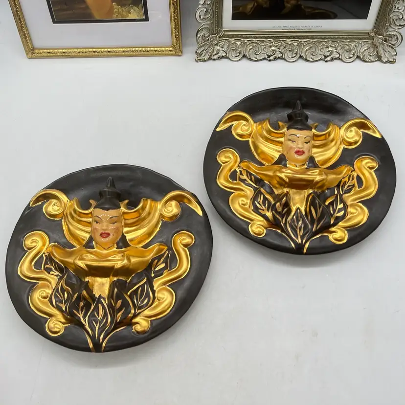 These are in fantastic condition and they are a pair. They are very cool wall pockets with no chips or cracks.