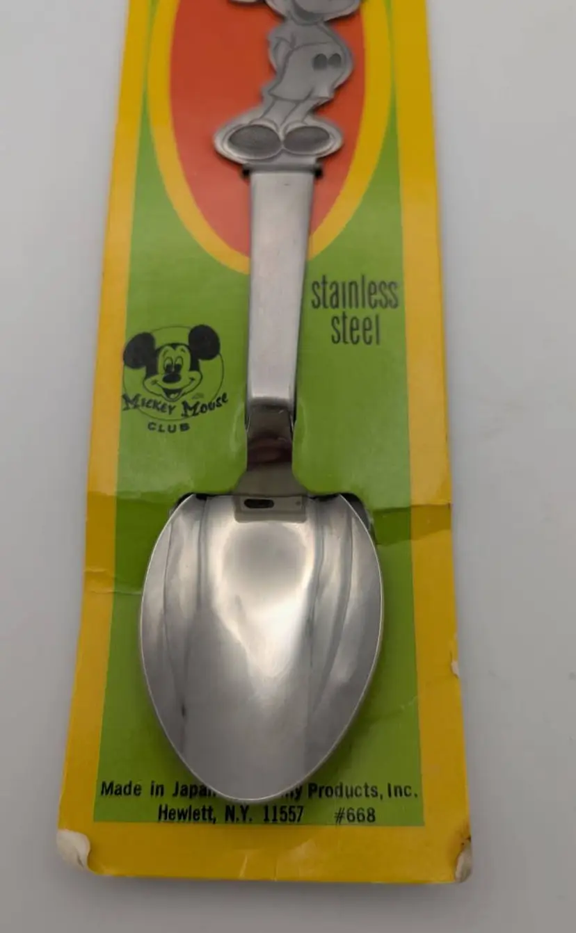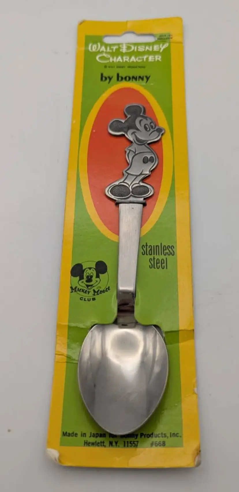 This is a vintage Walt Disney Mickey Mouse Club Spoon. Made in Japan for Bonny Products. Stainless steel Original price tag still on the back-for your entertainment! Itis 5.5 inches in length.